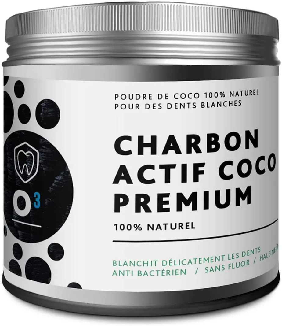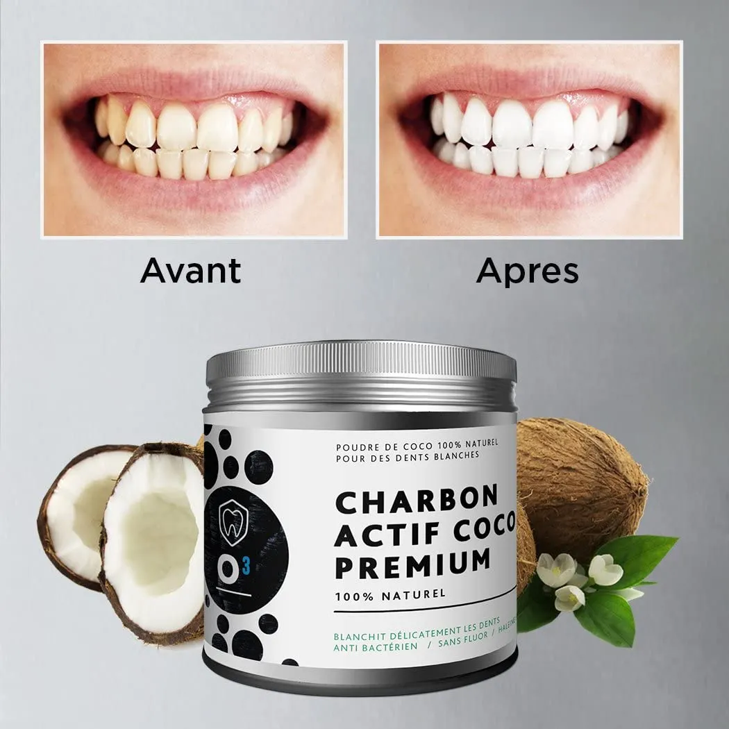 - Carbón de dientes blancos, maceta más grande: 100 g. Carbón activo procedente de coco orgánico