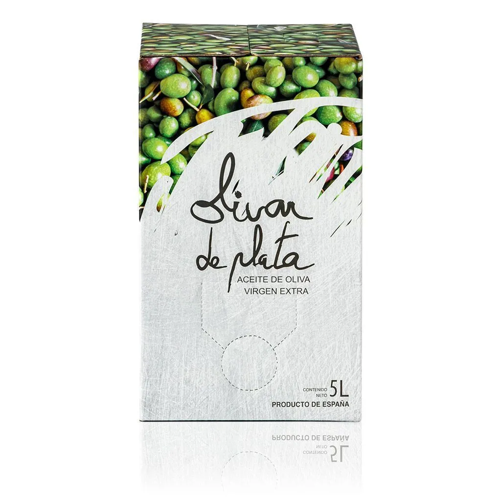 Nuevo formato. El formato bag in box de Olivar de Plata tiene una ventaja, la protección que ofrece a nuestro virgen extra. Impide el contacto del aceite con el oxígeno y también lo protege de la luz, mejorando así su conservación. Además el nuevo diseño es bonito y elegante para que adorne su cocina.