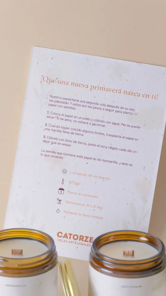 Incluye tarjeta con semillas de manzanilla plantable para crear tu propio huerto.