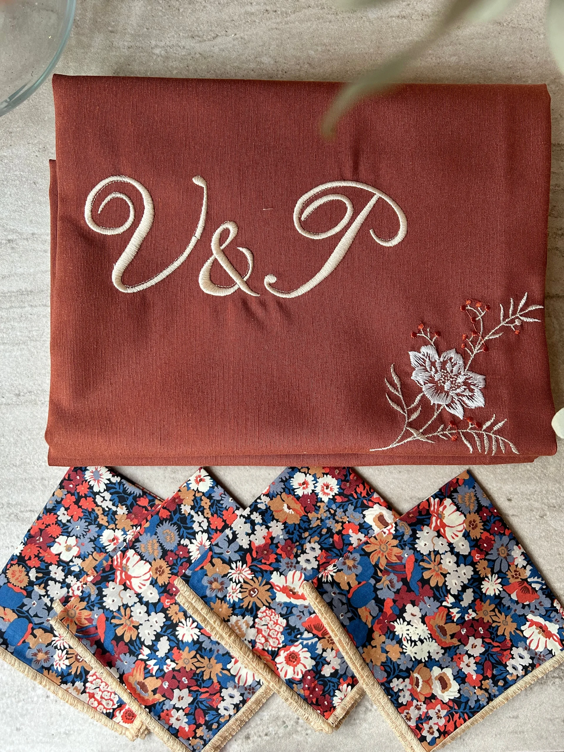Nuestro conjunto de mantel y servilletas FRONDA es elegante, perfecto para la temporada de otoño. Su mantel caldero personalizado junto con las servilletas en estampado Liberty, vestirán cualquier ocasión, de manera especial.