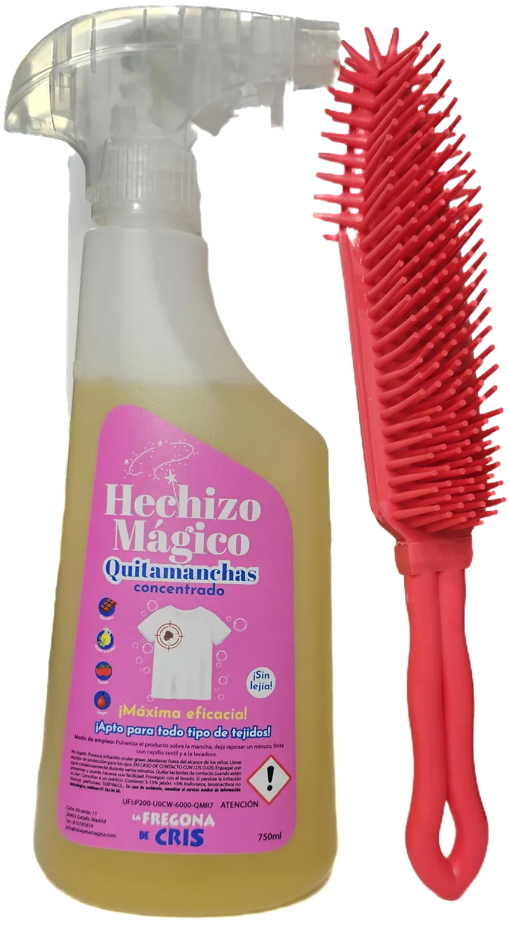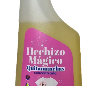 Hechizo mágico, quitamanchas concentrado, ¡sin lejía!. Apto para todo tipo de tejidos. ¡Máxima eficacia! Elimina manchas de: grasa ,chocolate ,sangre ,tomate ,maquillaje ,tinta ,vino, papilla, manchas en ropa interior…y mucho más.