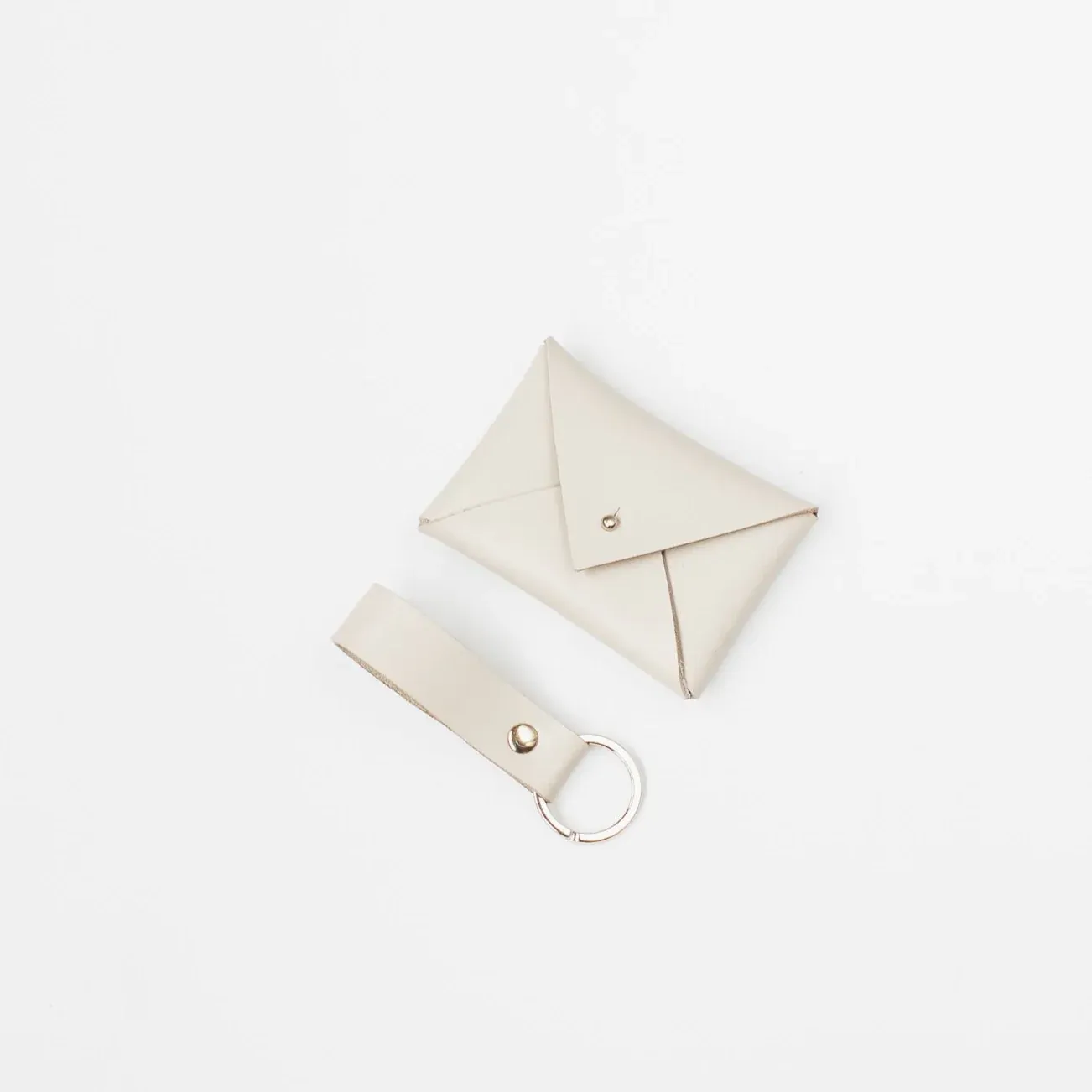 Sobre mini para tarjetas y llavero a conjunto. Misma piel, mismo color, mismo tacto. Puedes grabarlo con un nombre, palabra o iniciales.