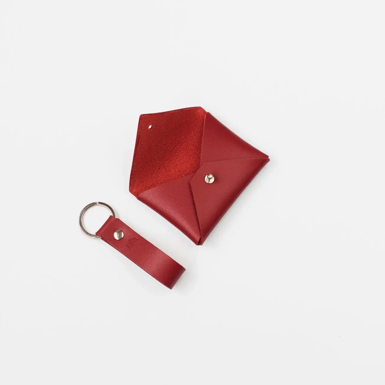 Sobre mini para tarjetas y llavero a conjunto. Misma piel, mismo color, mismo tacto. Puedes grabarlo con un nombre, palabra o iniciales.