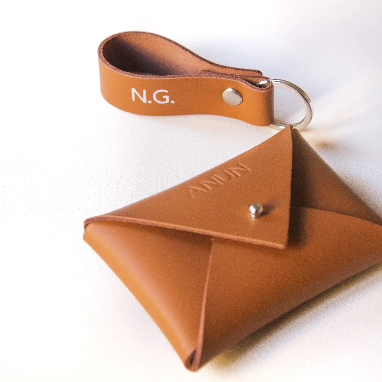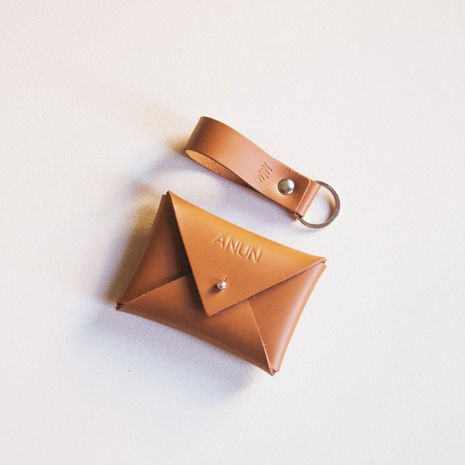 Sobre mini para tarjetas y llavero a conjunto. Misma piel, mismo color, mismo tacto. Puedes grabarlo con un nombre, palabra o iniciales.