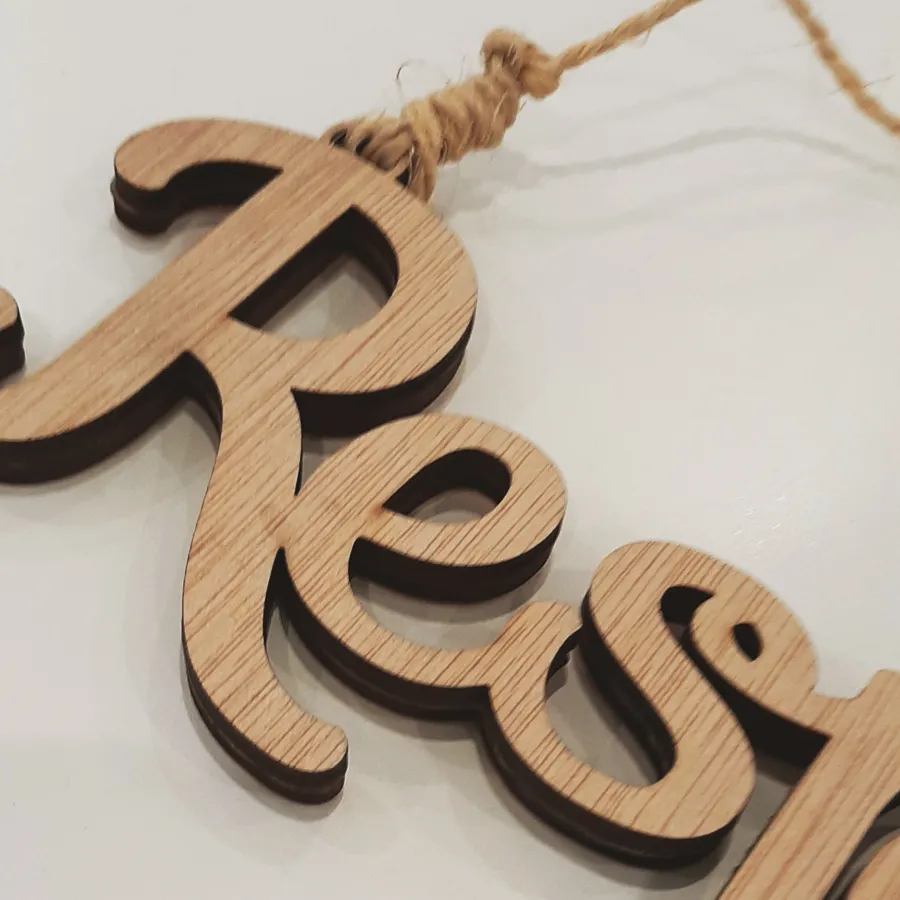 La pieza está fabricada en contrachapado de roble acabado en barniz natural, los cantos son negros. Puedes solicitar por correo el color que desees, también podemos grabar tu nombre, el de tu familia u amigos y así transformarla en una pieza única sólo para ti.
