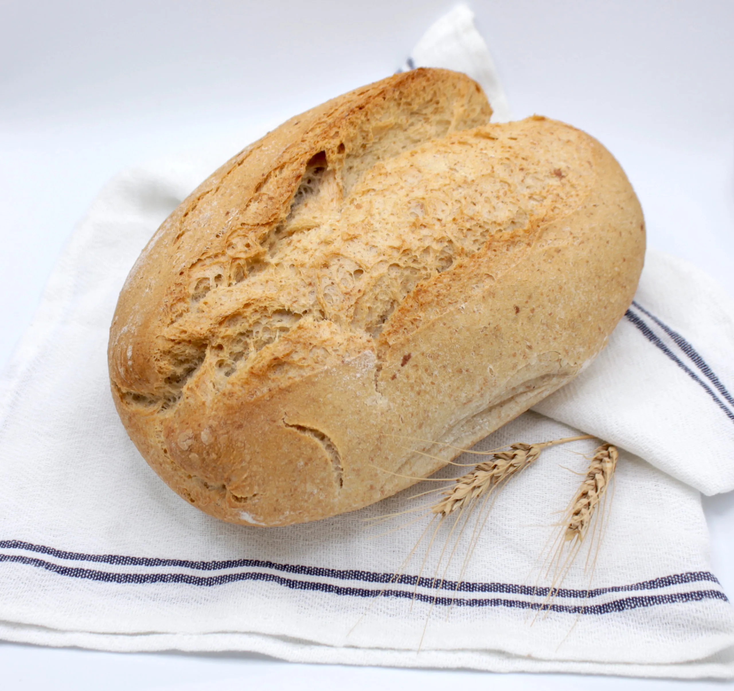 Nuestro pan Blanco 03 tiene un 20 % de harina integral, que le da mucho mejor sabor, pero manteniendo una miga alveolada. Tienen un peso de 500 gramos y una forma alargada, sin llegar a ser barras.