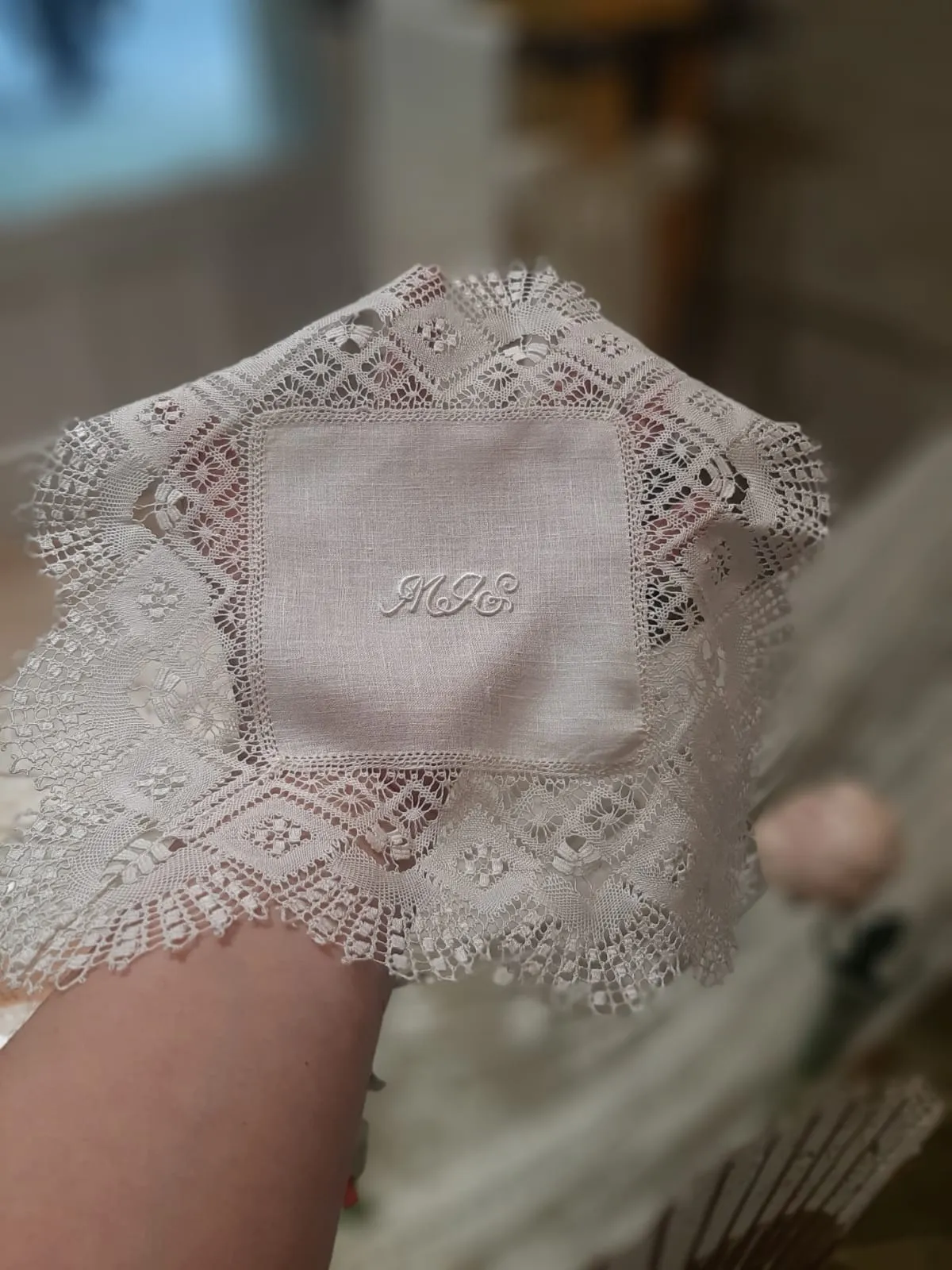 En Dosel elaboramos pañuelos para arras y alianzas de encaje de bolillos. Elaboración totalmente artesanal y solo con materiales nobles.