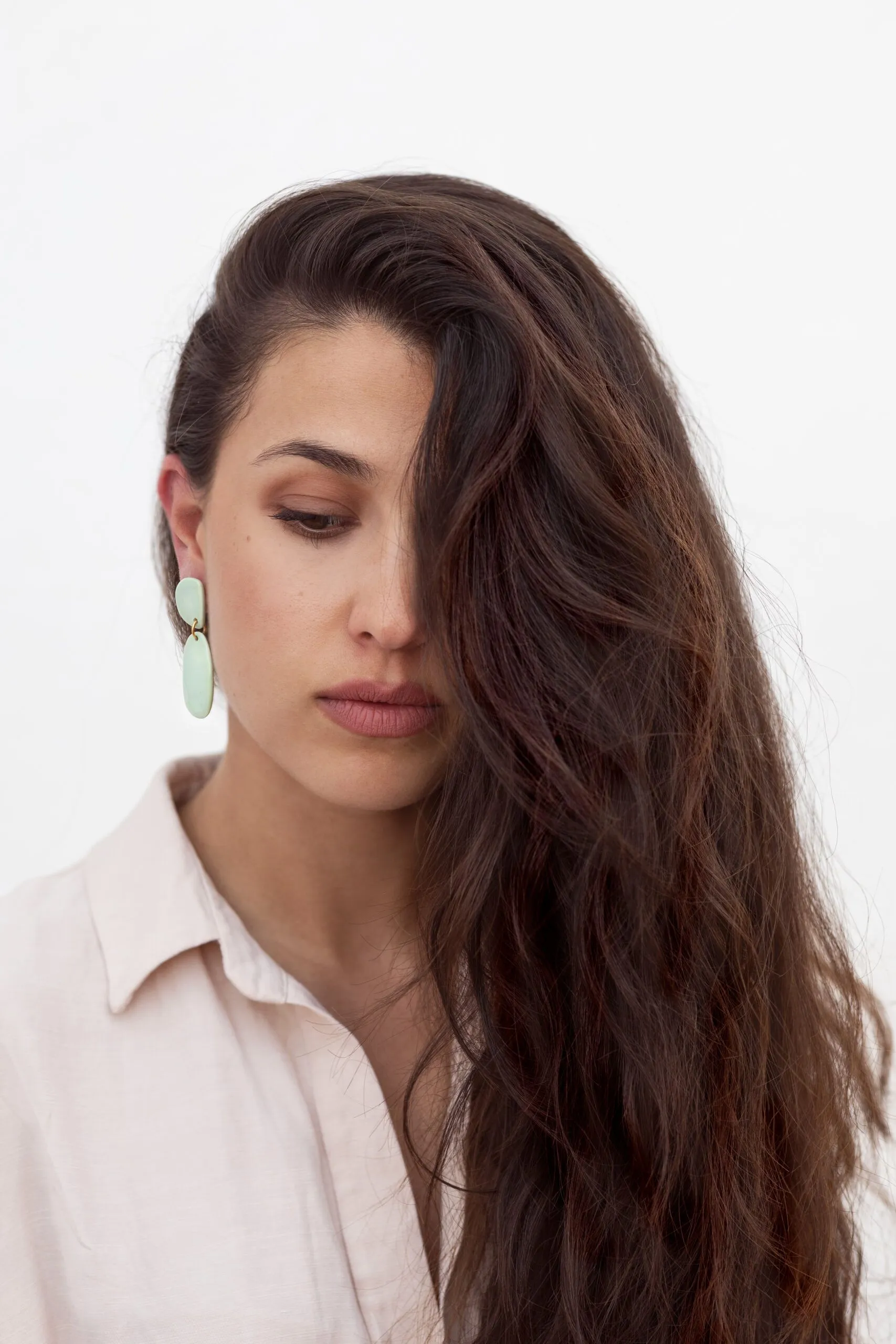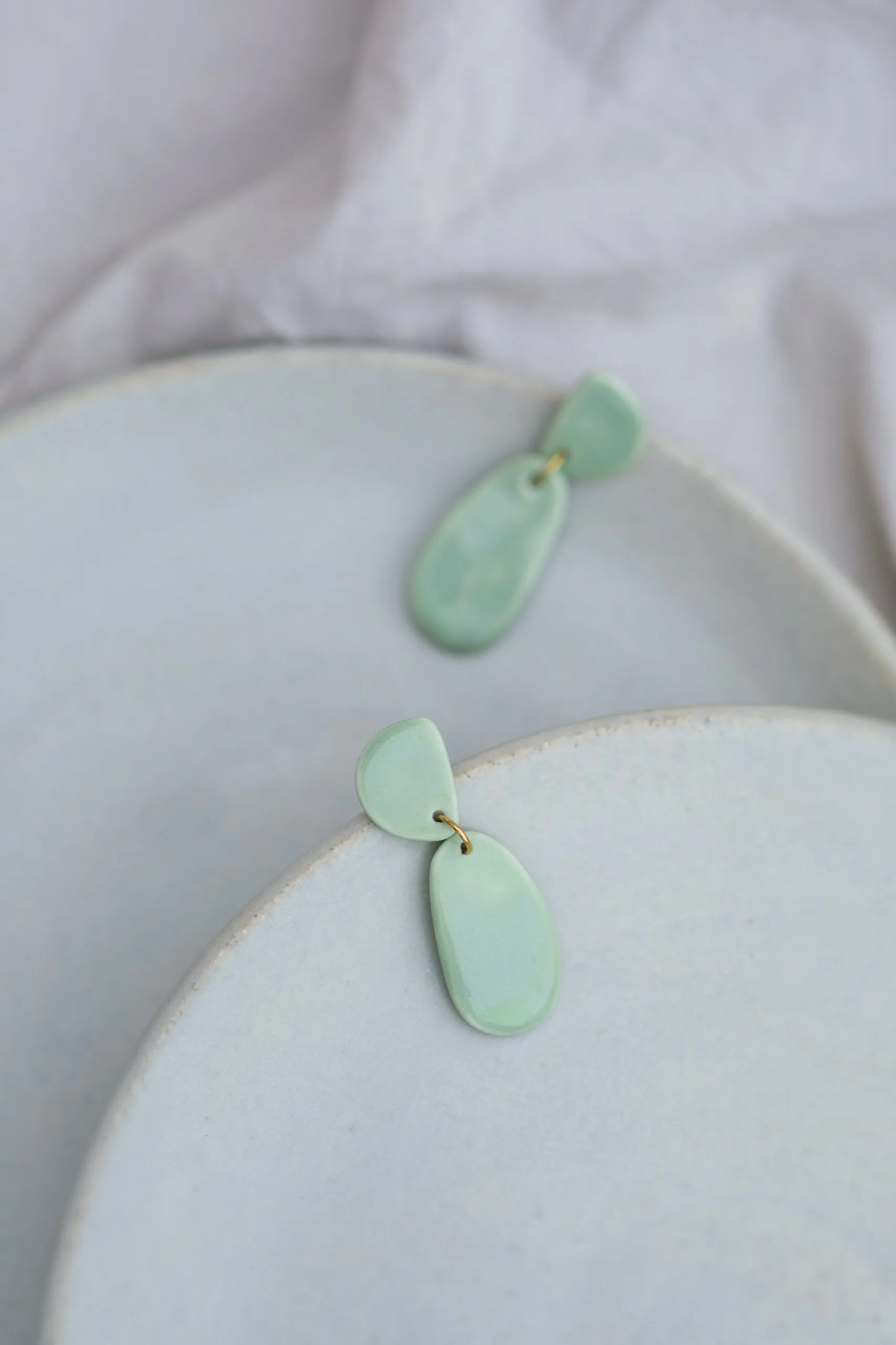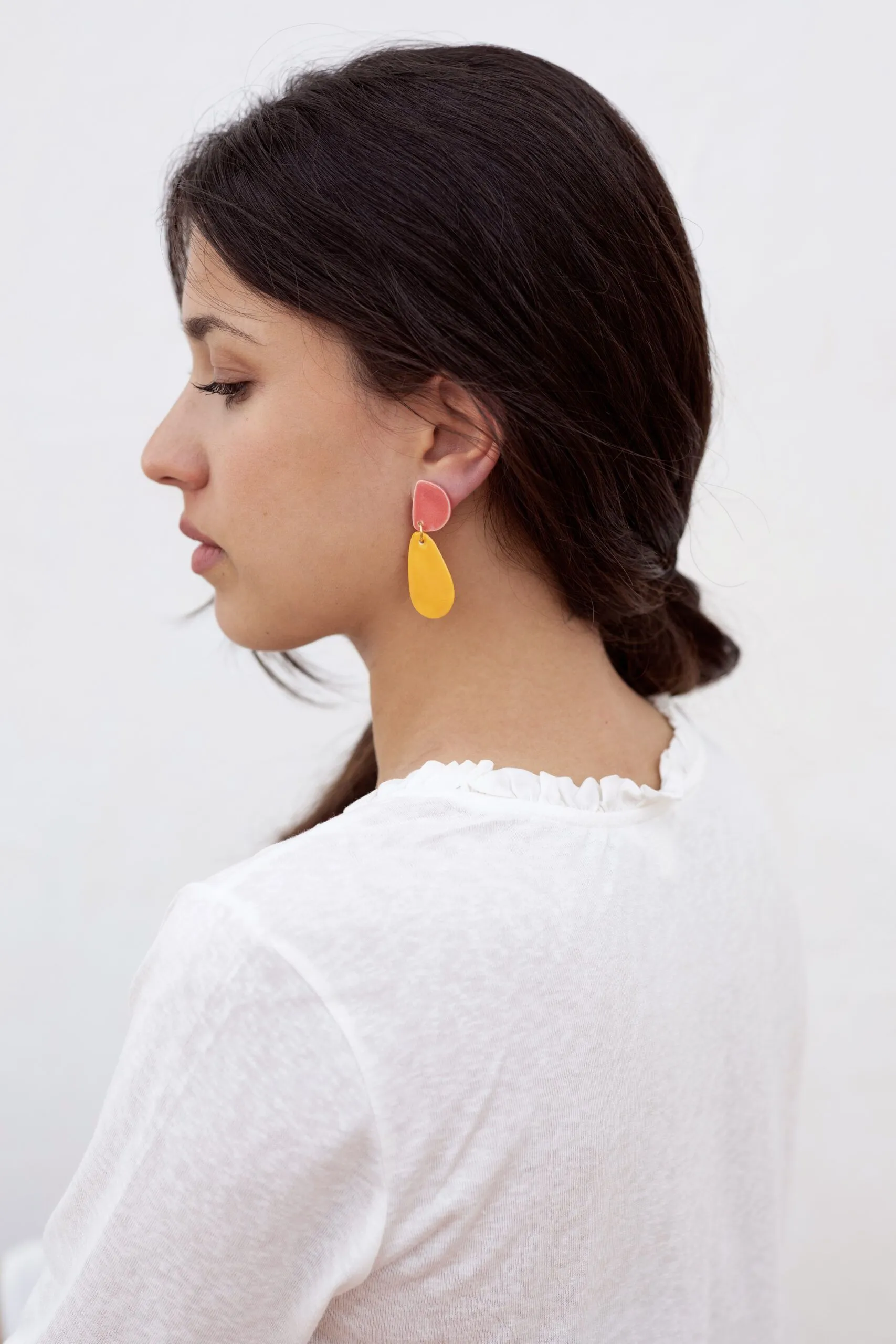 «Asimetrías» es el nombre de esta colección de pendientes realizados en porcelana.