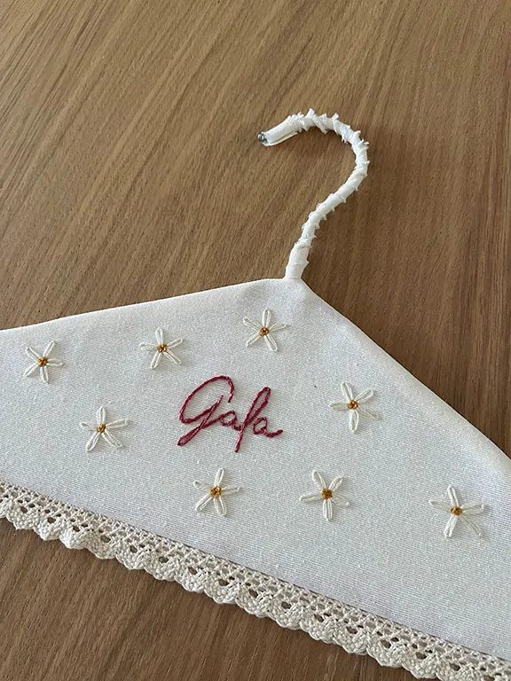 Las perchitas de bebé bordadas son un detalle precioso para regalar a los más pequeños de la casa.