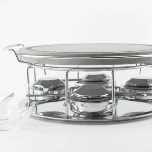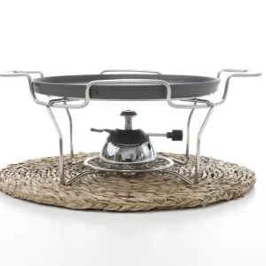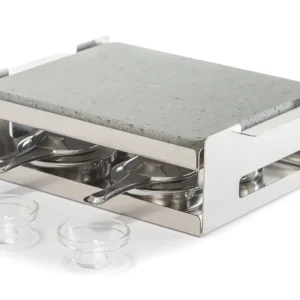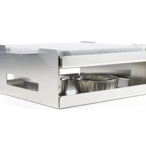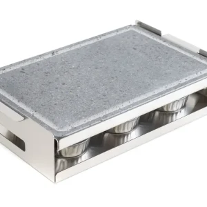 Este conjunto de piedra para asar con quemadores de alcohol está disponible con los siguientes tamaños de piedra: 20×20 | 25×20 | 26×26 | 30×20 | 30×25 | 38×25