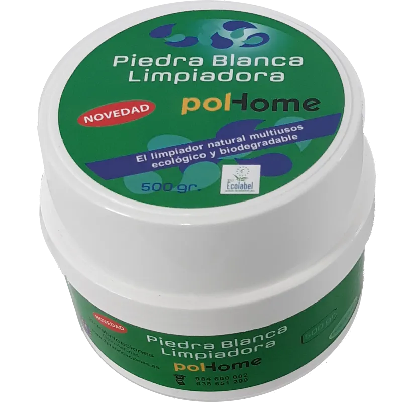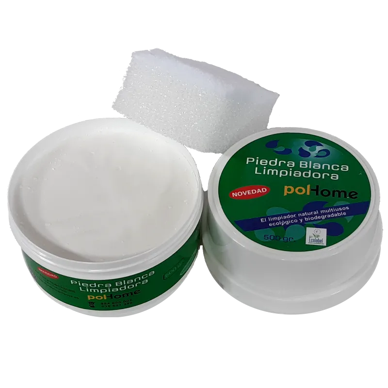 La piedra blanca limpiadora Polhome es tu mejor aliada, un producto natural, ecológico y biodegradable. No contiene productos químicos corrosivos o perjudiciales para la salud.