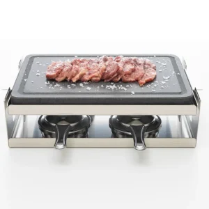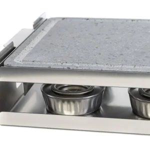 - La piedra se puede meter en el horno con la bandeja, y una vez caliente se coloca sobre su soporte, de este modo, la piedra siempre va a estar segura, sin riesgo de caerse al manejarla.