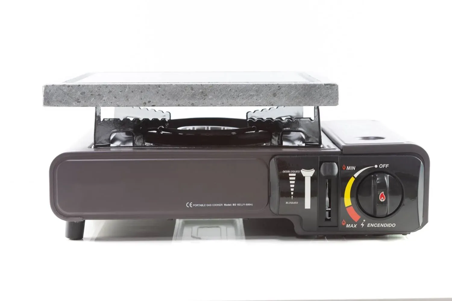 Ventajas de la Piedra para cocinar 26×26 + cocina portátil + 2 botes de gas para restaurantes y hostelería.