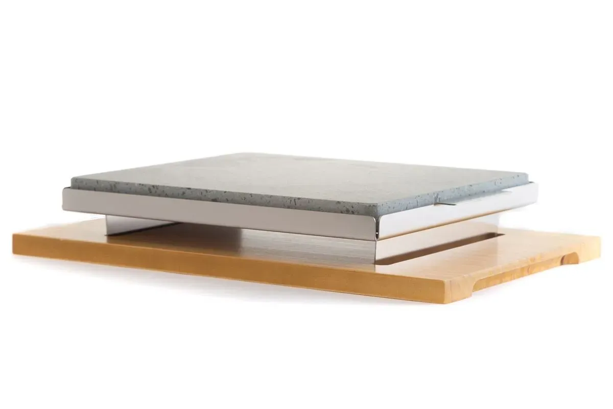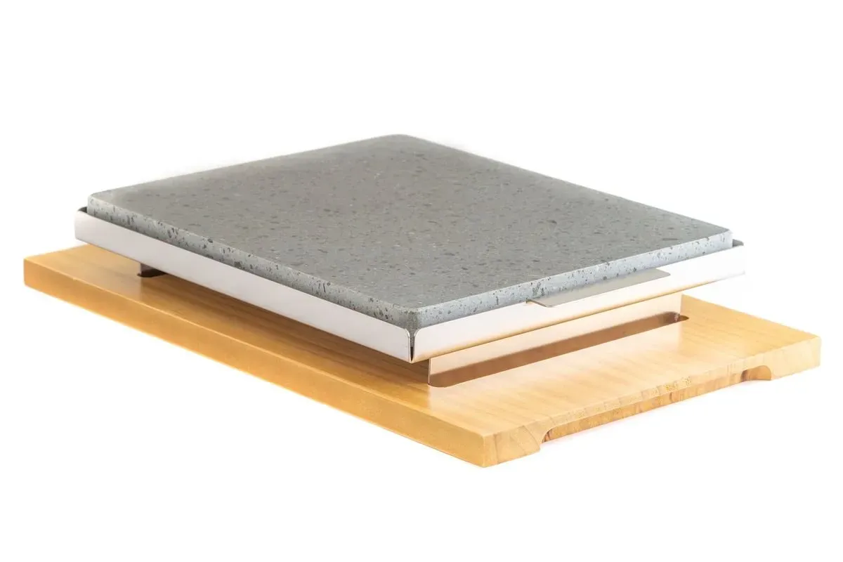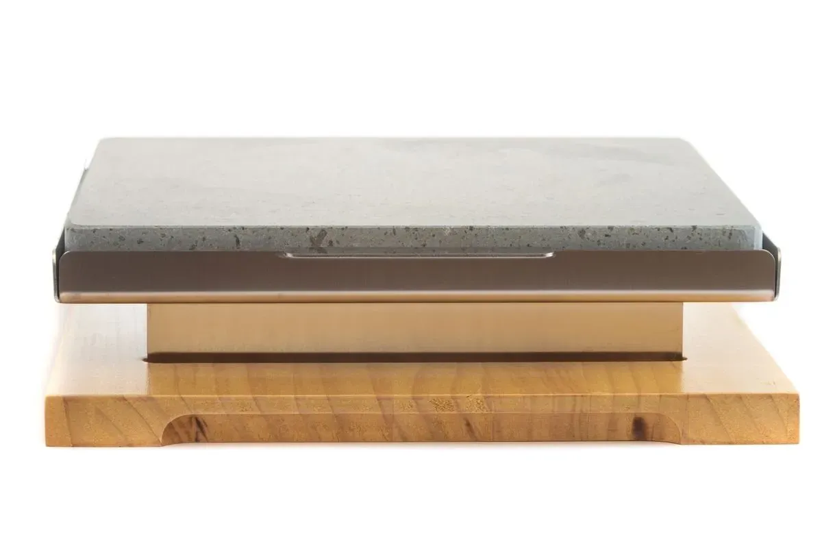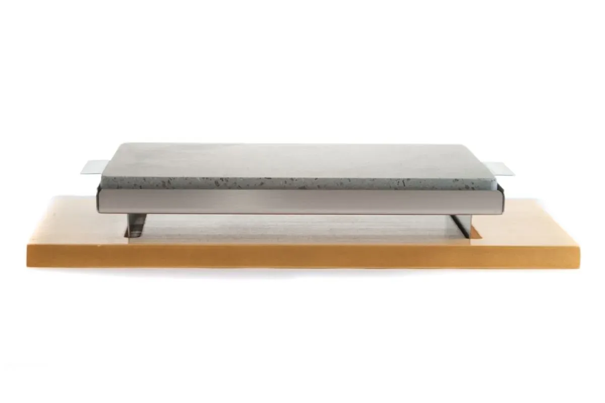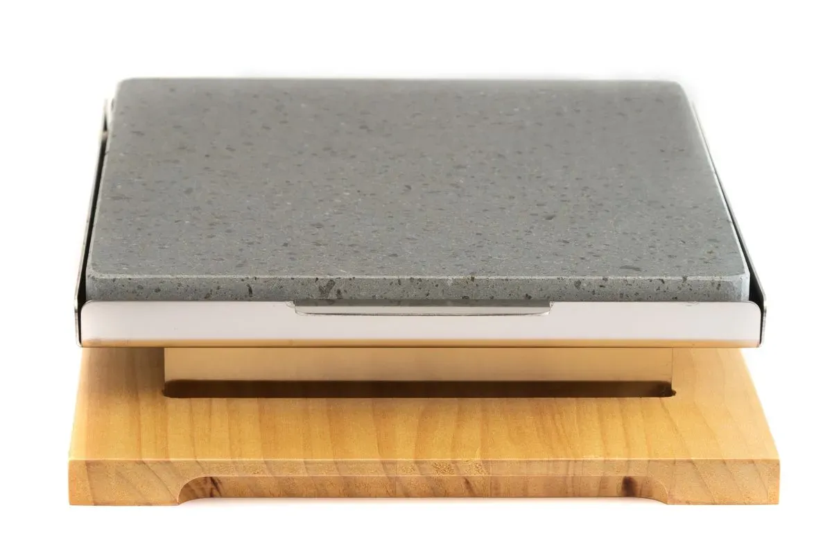 Piedra para carne a la piedra 30×25 2cm + soporte inox + base madera