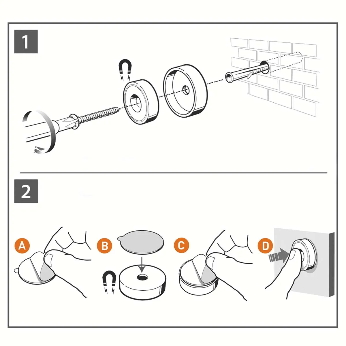 Los soportes magnéticos pueden fijarse a la pared con tornillos o almohadillas adhesivas en superficies planas.