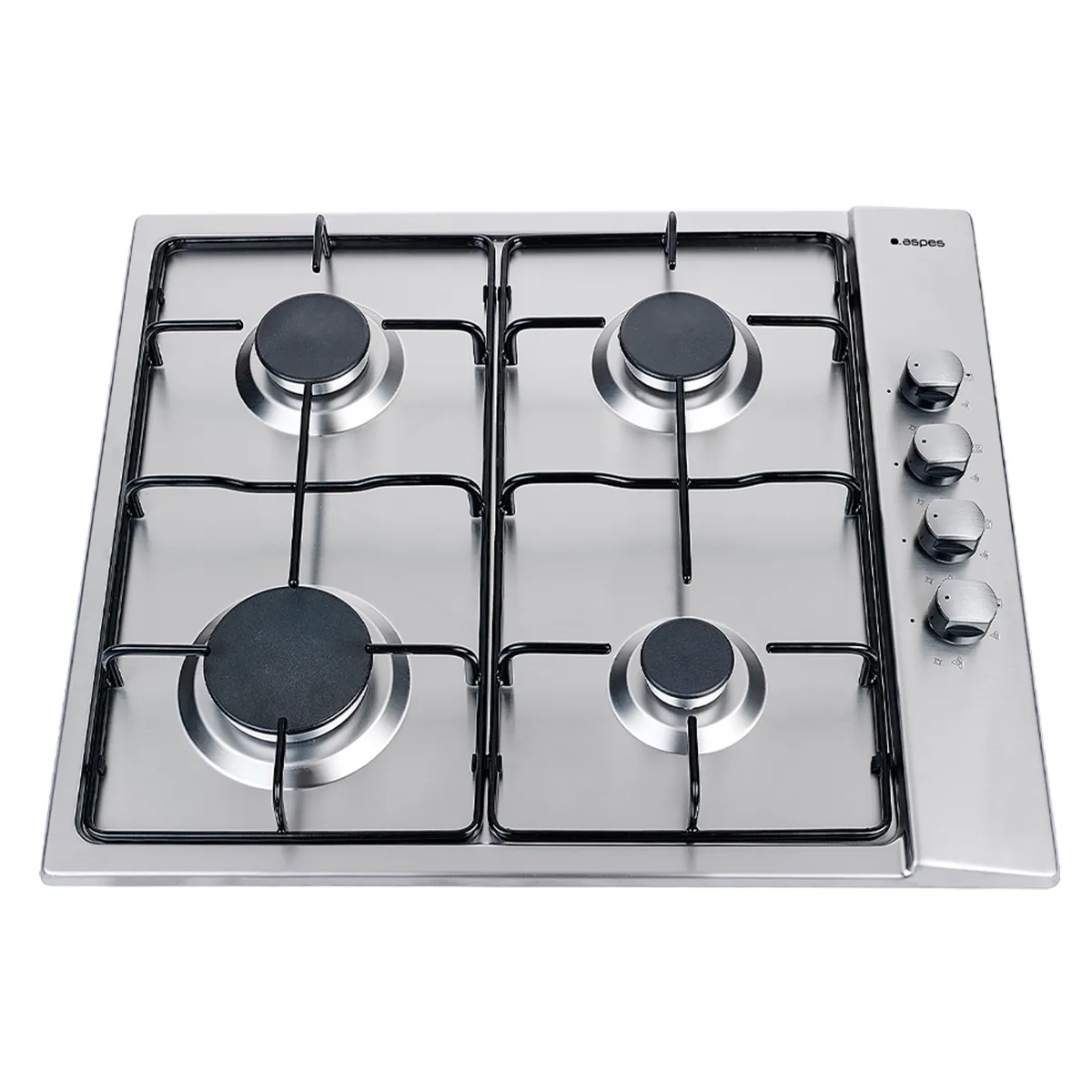 Encimera Gas Butano Aspes con 4 fuegos, ignición automática, kit de conversión, sistema de control Electrónico y estética Inox con parrillas esmaltadas.