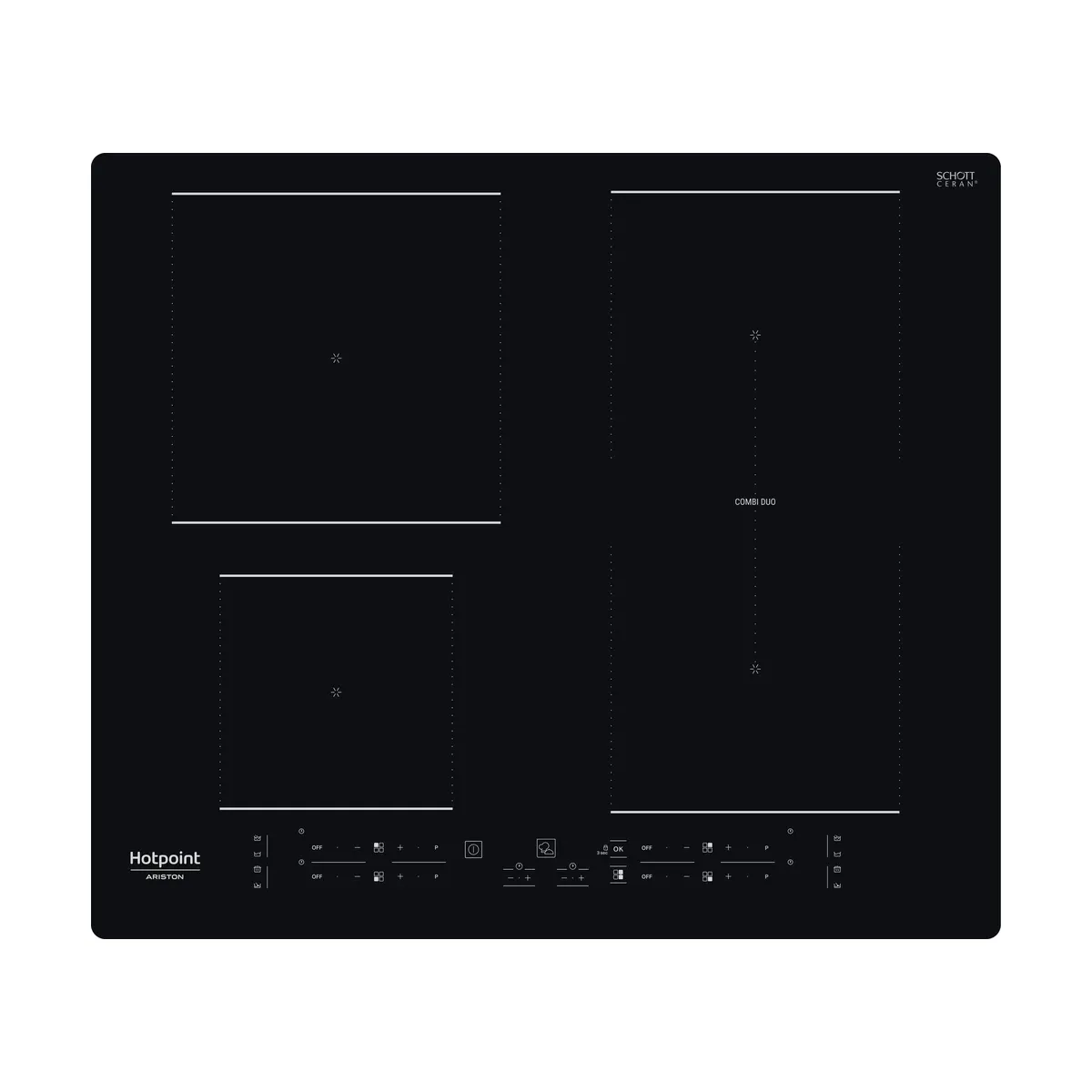 Placa de inducción Hotpoint – Ariston con 4 zonas de inducción.