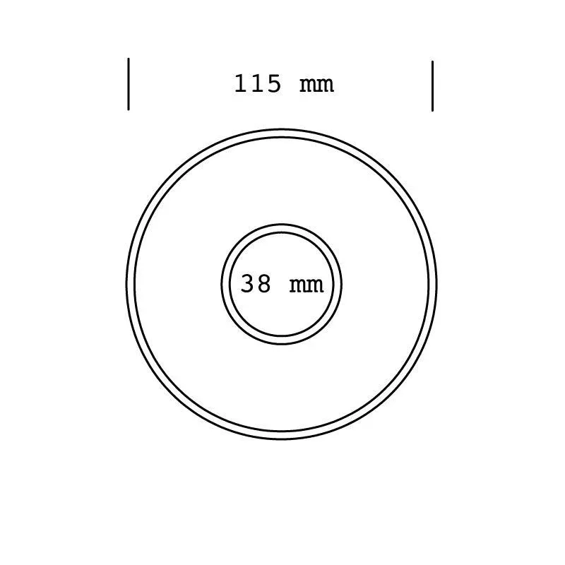 - Diámetro exterior: 115 mm / Diámetro interno: 44 mm