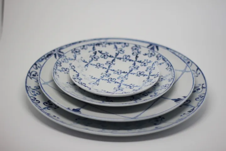 Plato de Postre Tiles 22cm, de la casa Vista Alegre , porcelana blanca con motivos azules., La palabra azulejo con origen árabe azzelij, que significa pequeña piedra pulida, aunque también se suele asociar al término persa lazkward, que significa lapislázuli, por la fuerte presencia de este color en gran parte del azulejo portugués. La colección Tiles presta homenaje a este legado árabe, que se convertirá en una de las producciones artísticas más originales de la cultura portuguesa. La infinidad de motivos decorativos propios, no solo geométricos o vegetales, superando su sencilla función utilitária y convirtiéndose en arte.