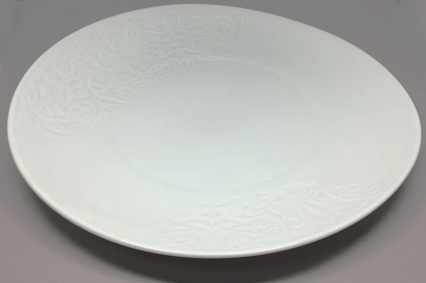 Plato Trinchero Naíz de la serie Chef´s Collection de la casa Vista Alegre , porcelana blanca, 292mm de diámetro y largo, 36mm de alto y 793gr de peso