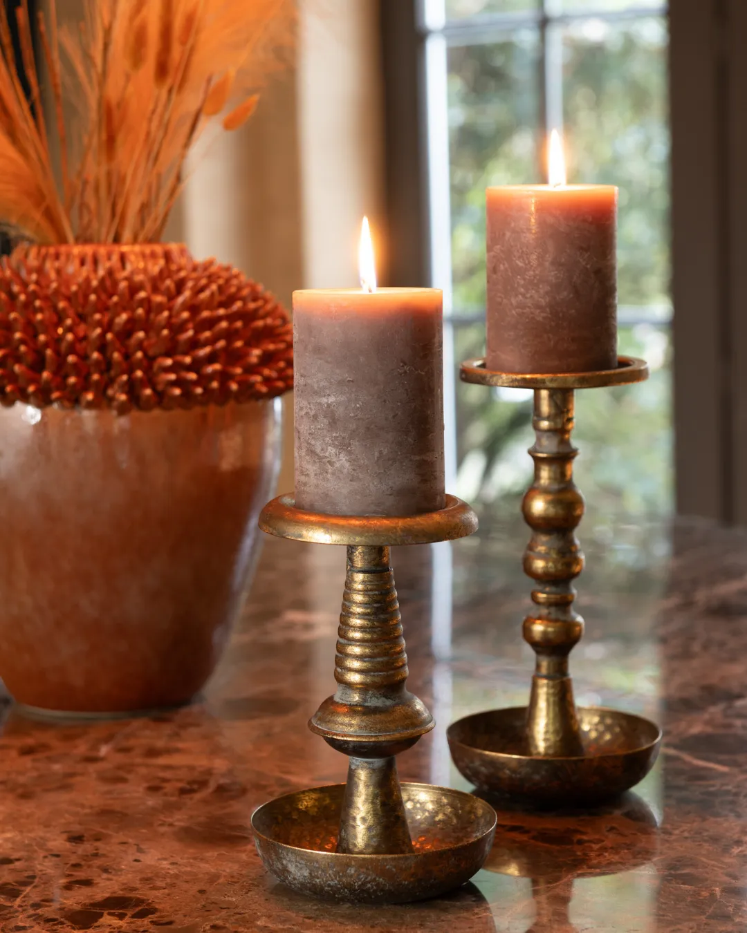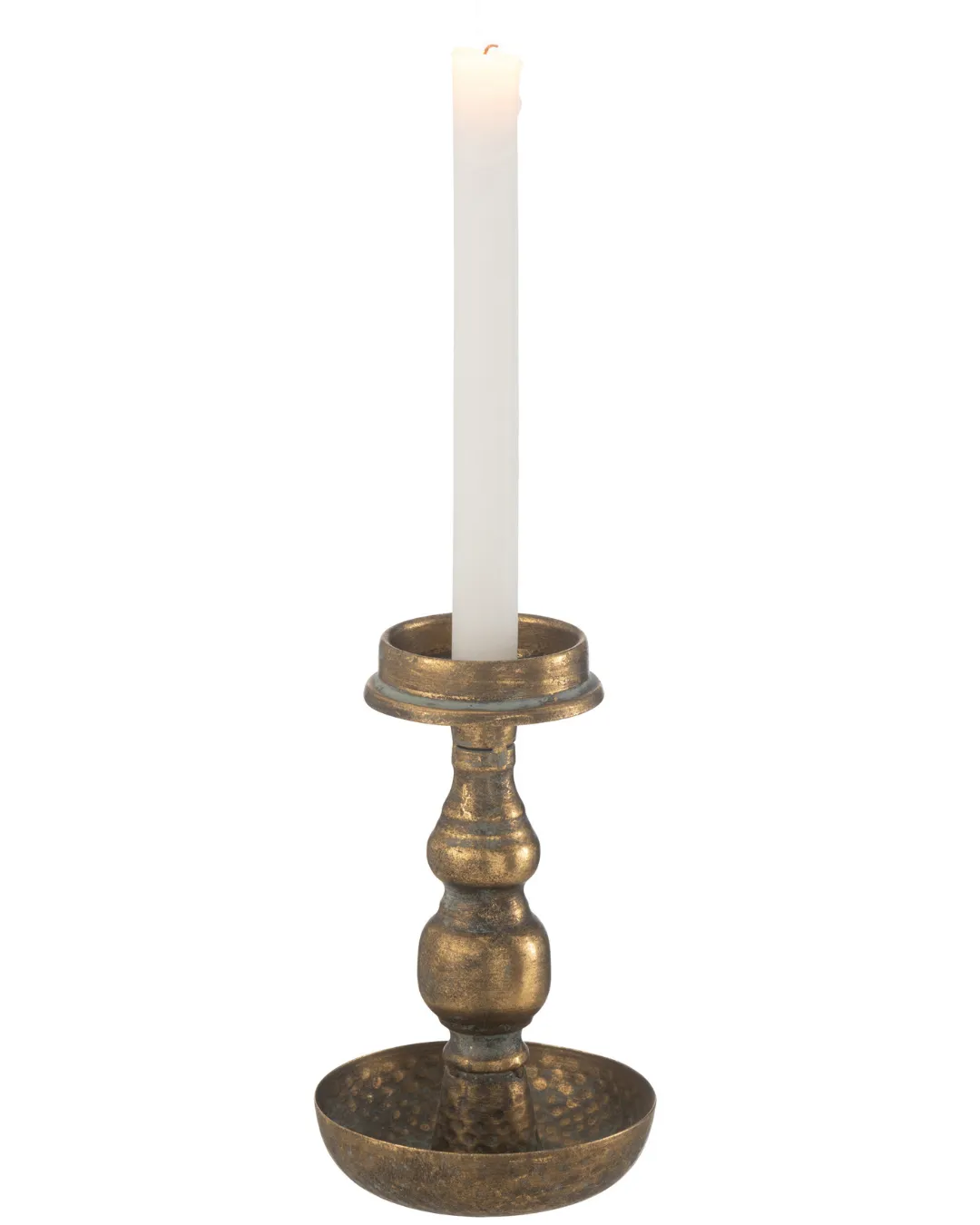 Portavelas estilo antiguo metálico, color dorado. Medidas 19 cm. alto x 11,7 cm. ancho. Peso 0.17 kg. Producto no apto para exteriores.