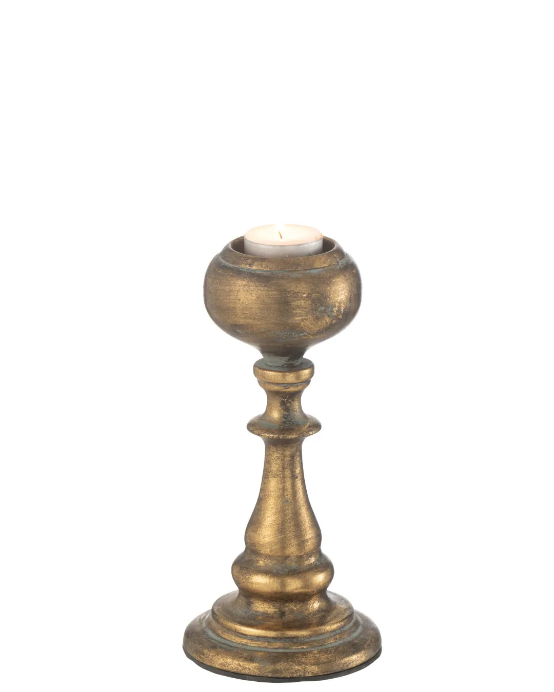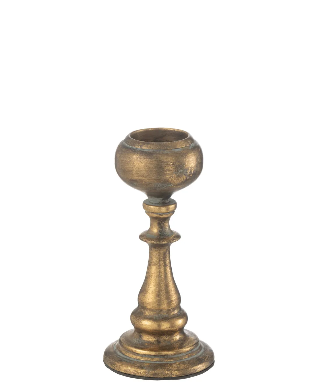 Portavelas estilo antiguo metálico, color dorado. Medidas 19 cm. alto x 11,7 cm. ancho. Peso 0.17 kg. Producto no apto para exteriores.