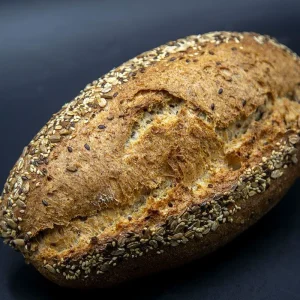 Harina, agua, sal, masa madre ,levadura y mejorante.