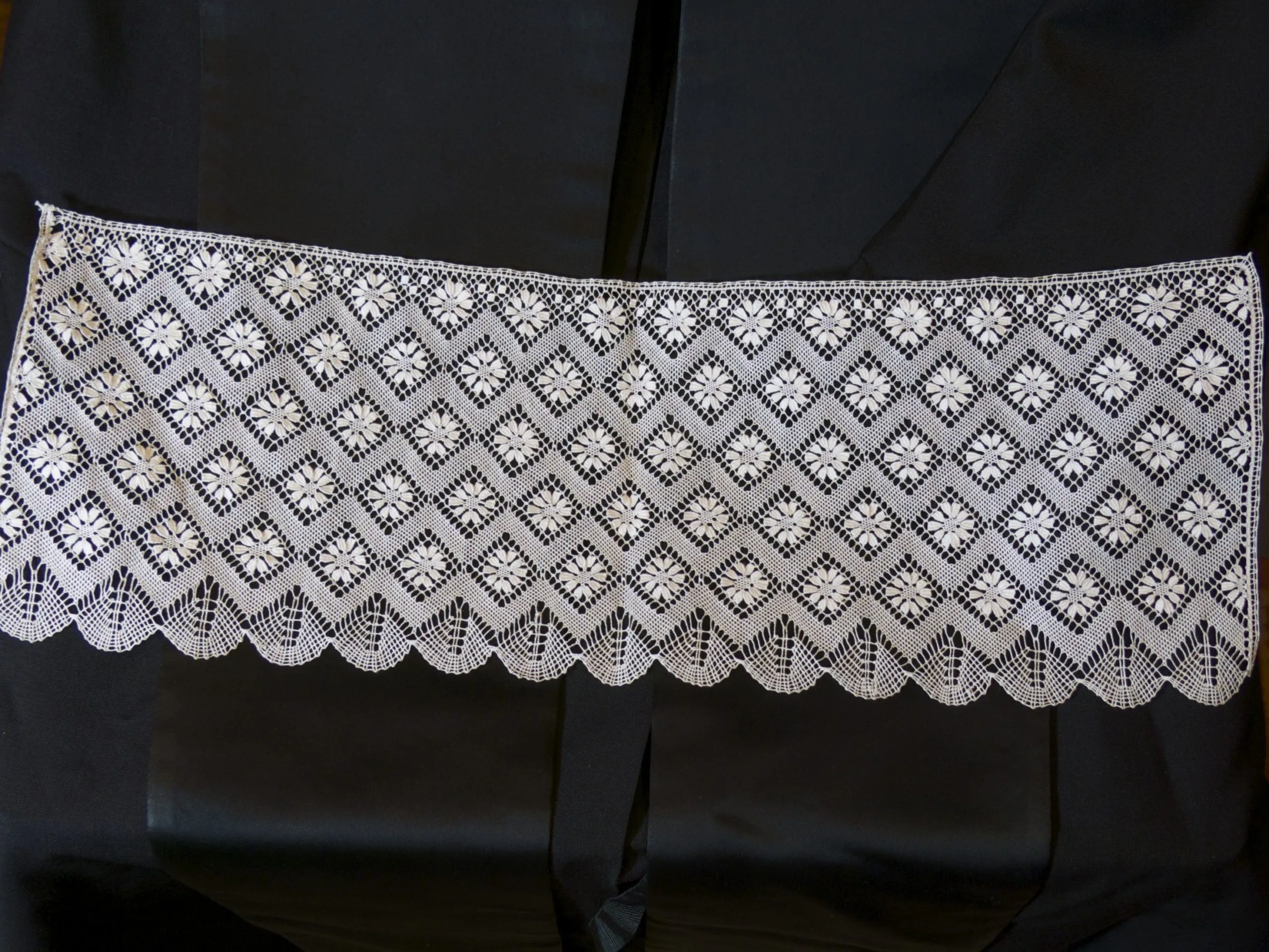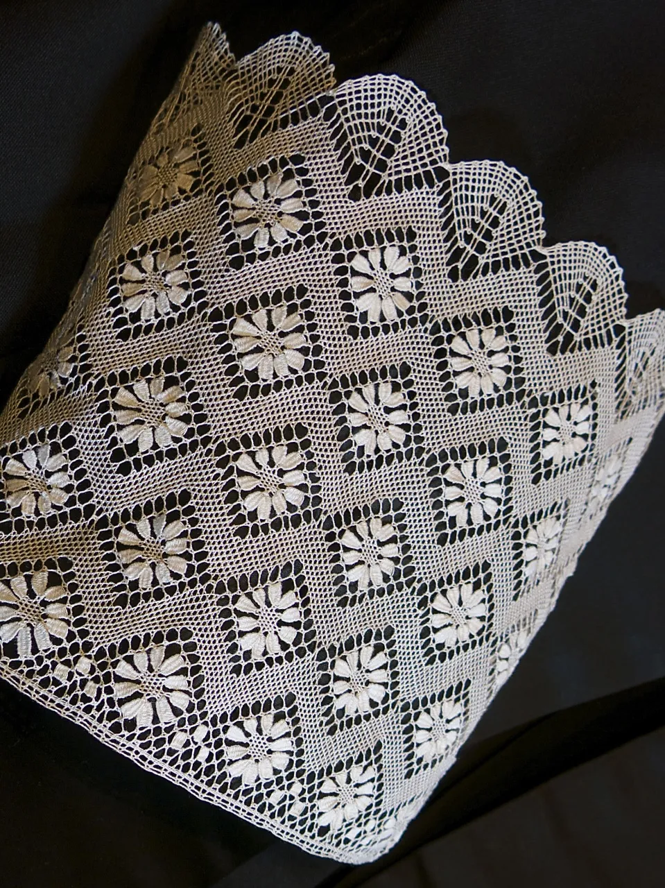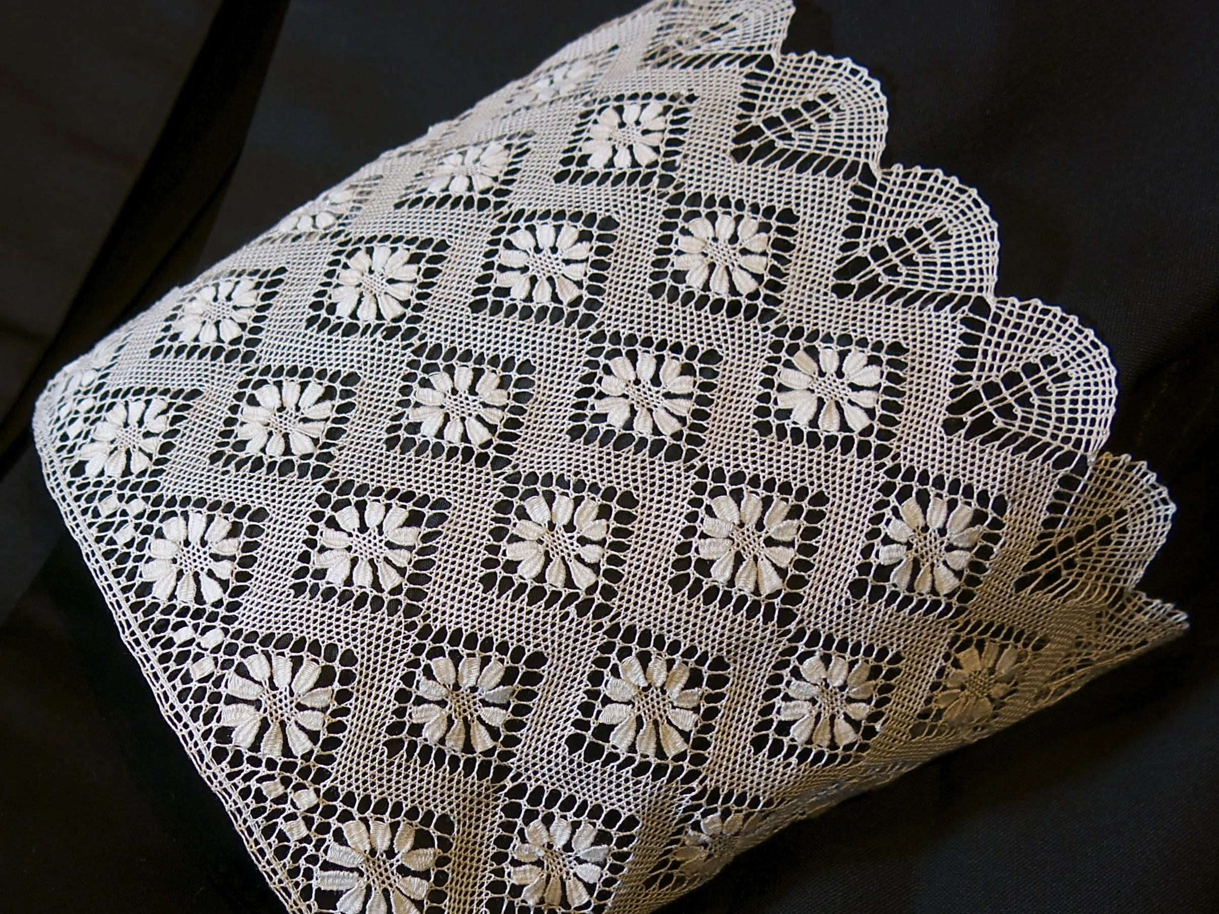 Estas puñetas han sido elaboradas artesanalmente con hilo de algodón mediante la técnica del encaje de bolillos.