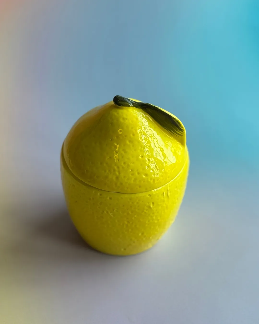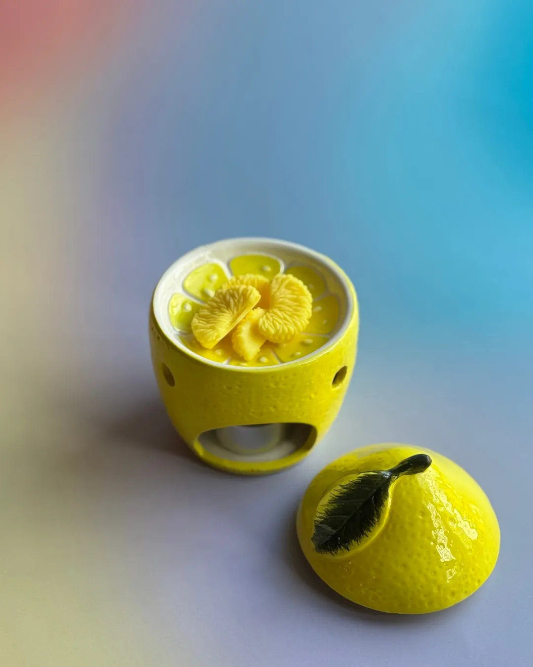 Quemador de cerámica en forma de limón. Perfecto para utilizar con nuestros waxmelts artesanales y darle un toque original y fresco a cualquier espacio.