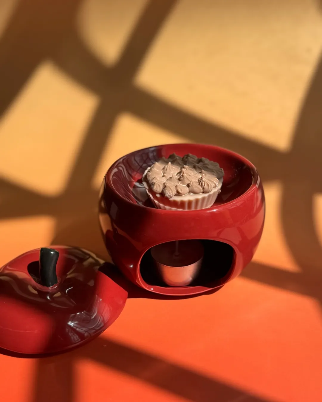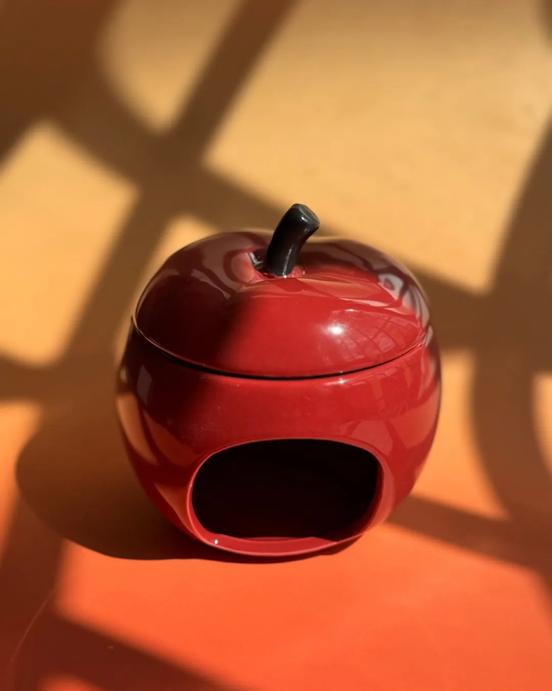Quemador de cerámica en forma de manzana. Perfecto para utilizar con nuestros waxmelts artesanales y darle un toque original y fresco a cualquier espacio.