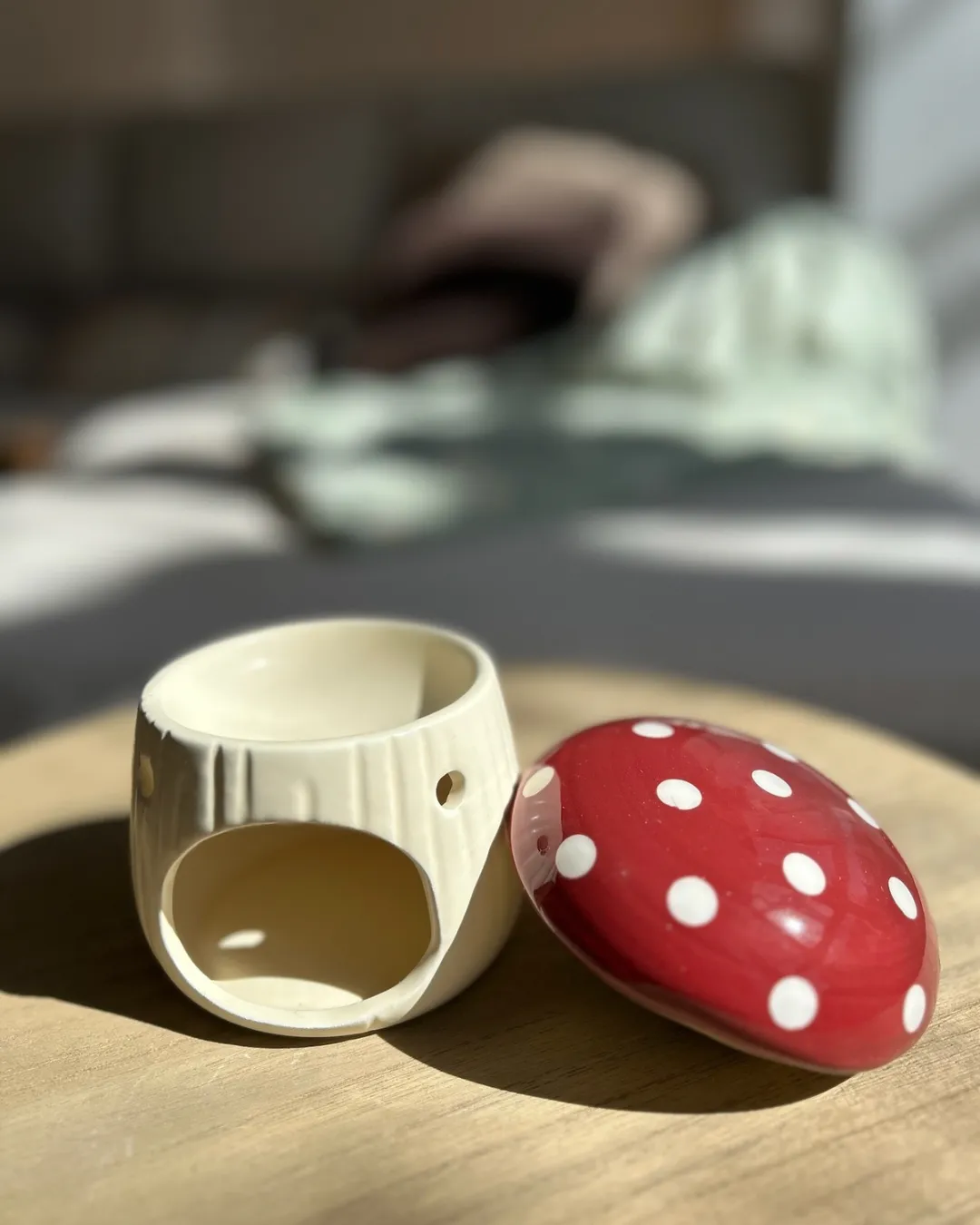 Quemador de cerámica en forma de seta. Perfecto para utilizar con nuestros waxmelts artesanales y darle un toque original y fresco a cualquier espacio.