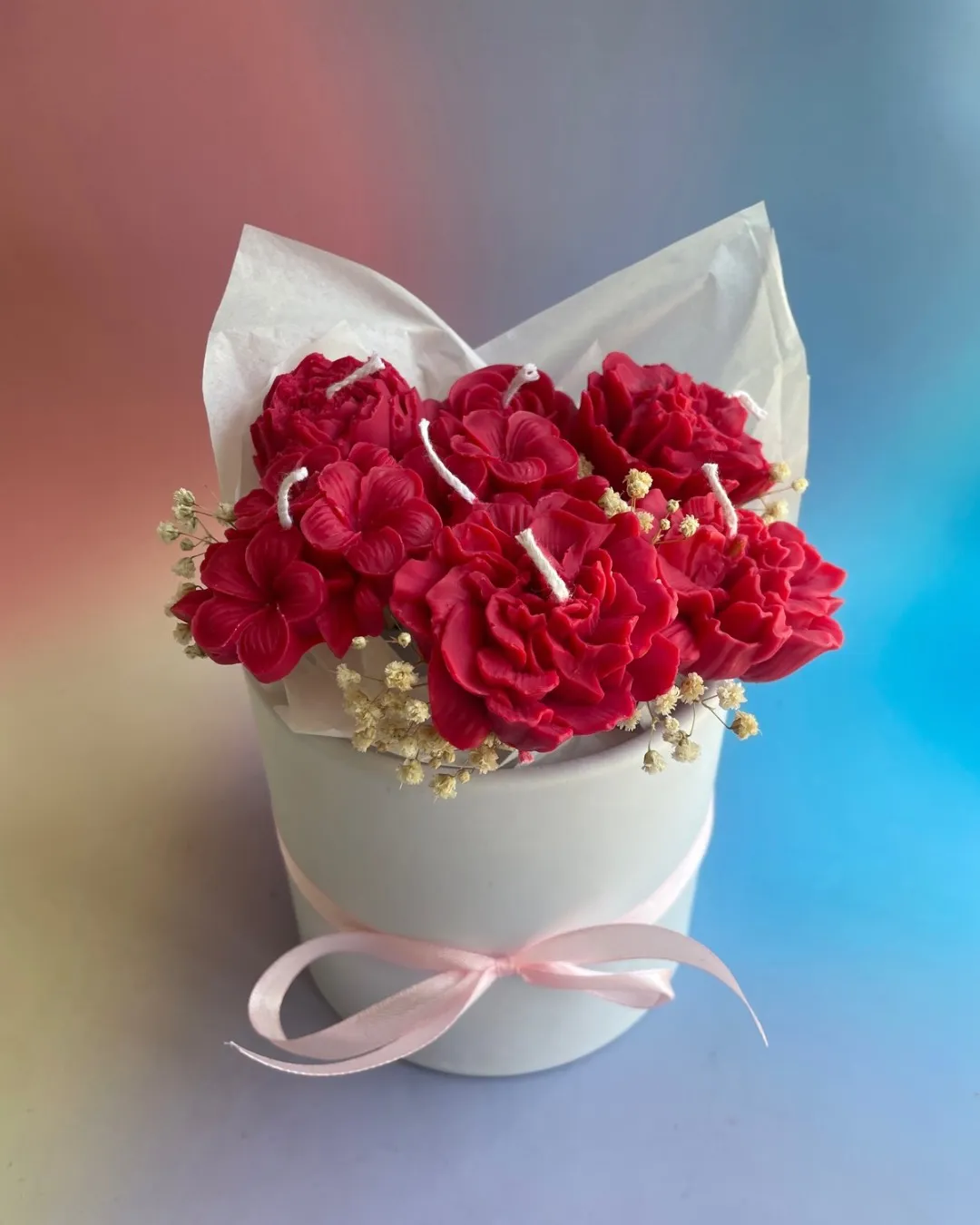 Ramo de flores rojas de cera de soja – Hecho a mano