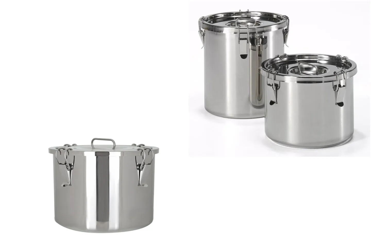 Recipiente cilíndrico con tapa hermética, construido en acero inoxidable 18/10, dotado de 4 cierres mecánicos de tracción. Tapadera con junta de estanqueidad. Asidero de agarre y válvula de descompresión. 22L, 33Ø 340mm alt. 3.70kg, asa abatible superior.