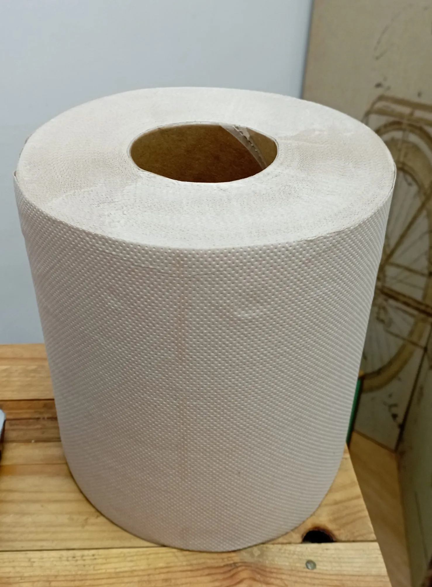 Rollo de papel de cocina seca manos de celulosa biodegradable.