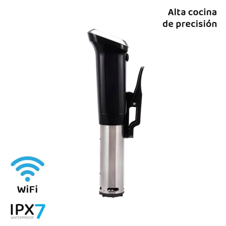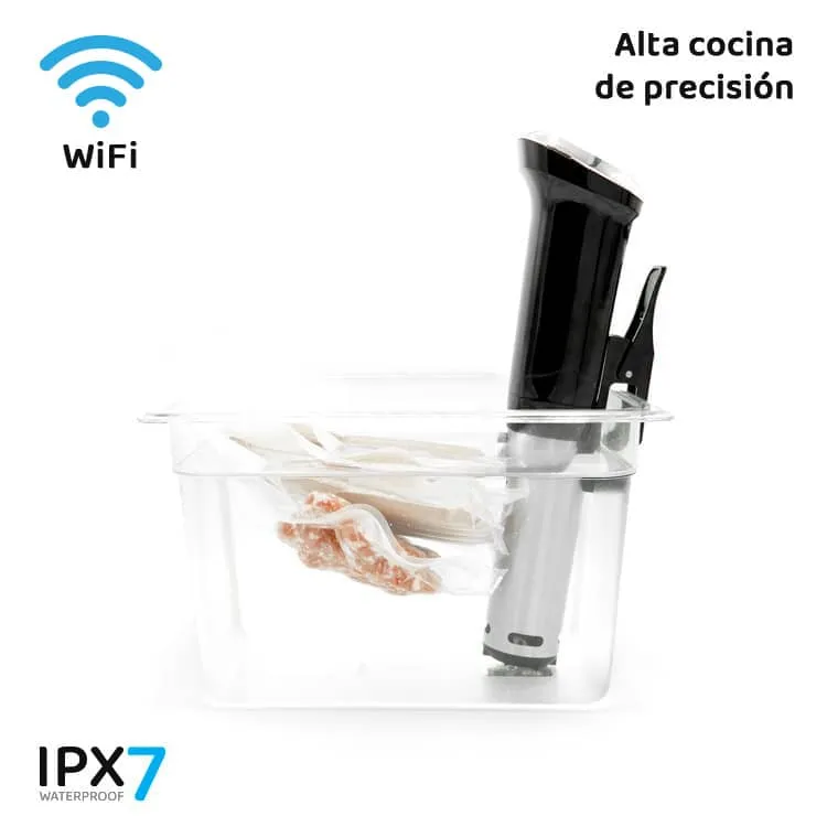 El ThermoCooker calienta el agua y la hace circular dentro del recipiente para garantizar una temperatura constante y estable en todo momento, de esta manera conseguimos cocciones más uniformes y perfectas en toda la pieza a cocinar.