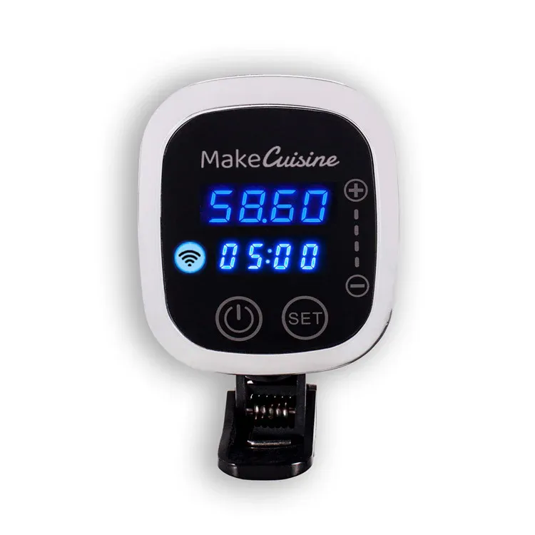 Descubre que no necesitas grandes instalaciones ni equipos complejos para crear platos exquisitos aplicando técnicas de cocina a baja temperatura. Tan solo tienes que introducir el tiempo y la temperatura. El «roner» Sous Vide de MakeCuisine hace el resto.