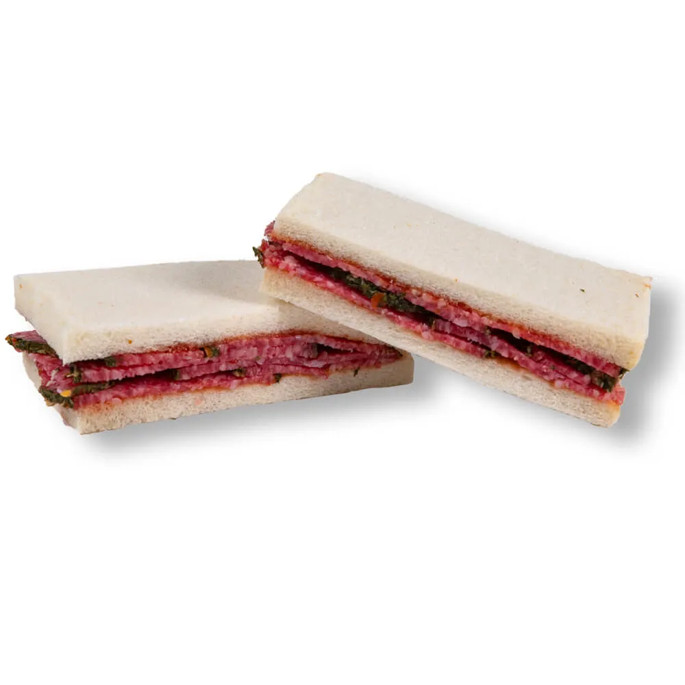 Disfruta de nuestro exquisito pan blanco relleno del mejor salami a las finas hiervas con un ligero napado de aceite de oliva virgen extra.