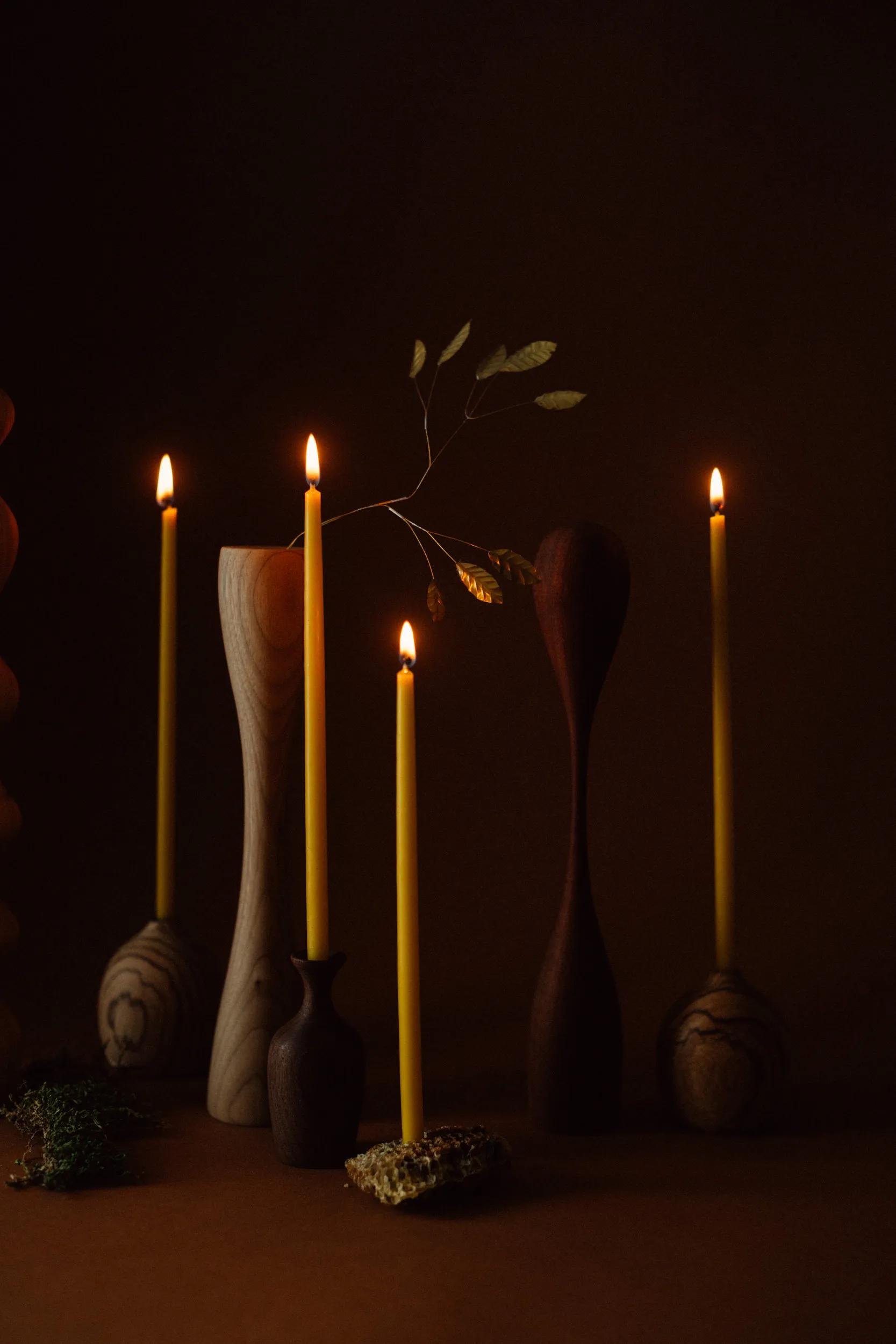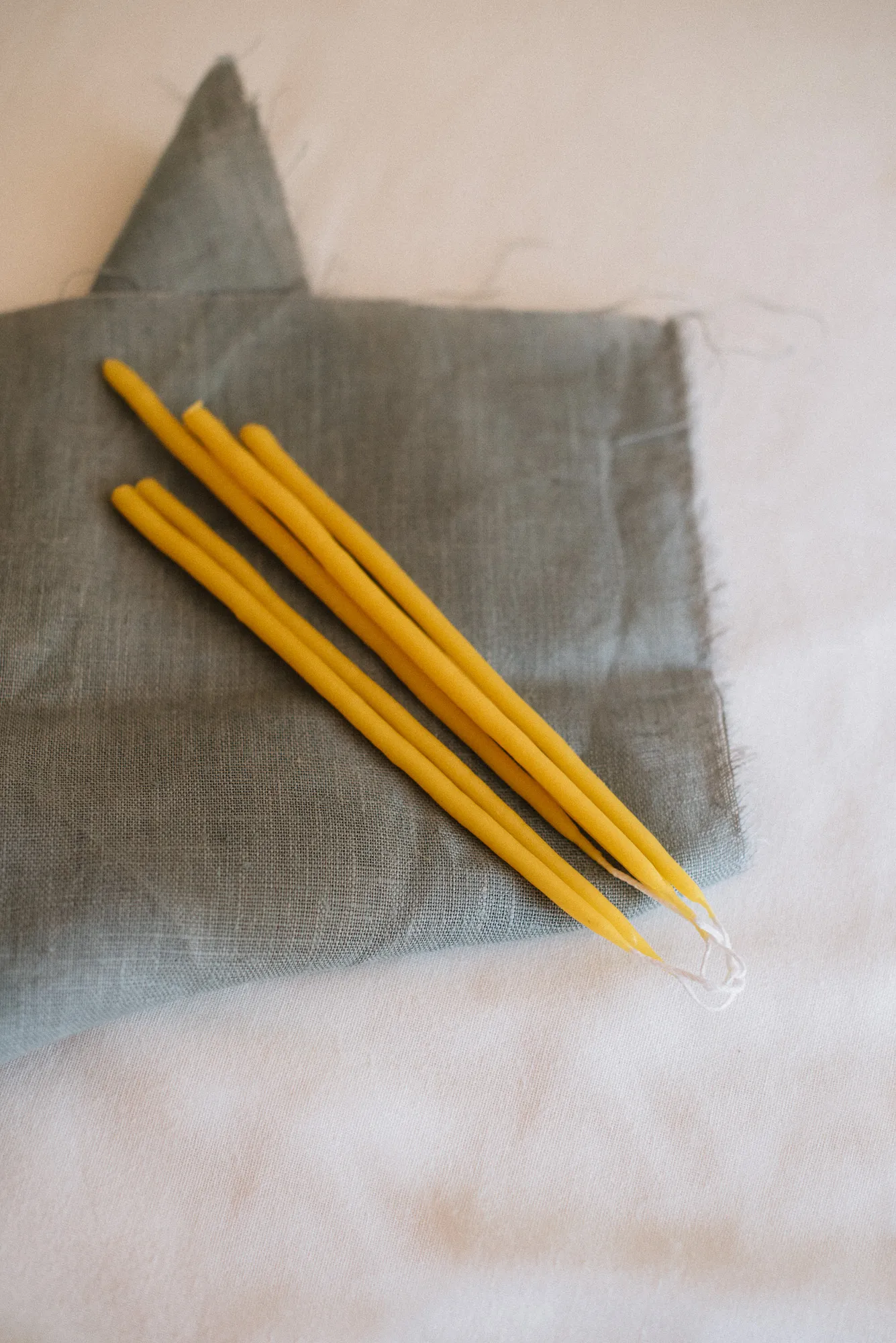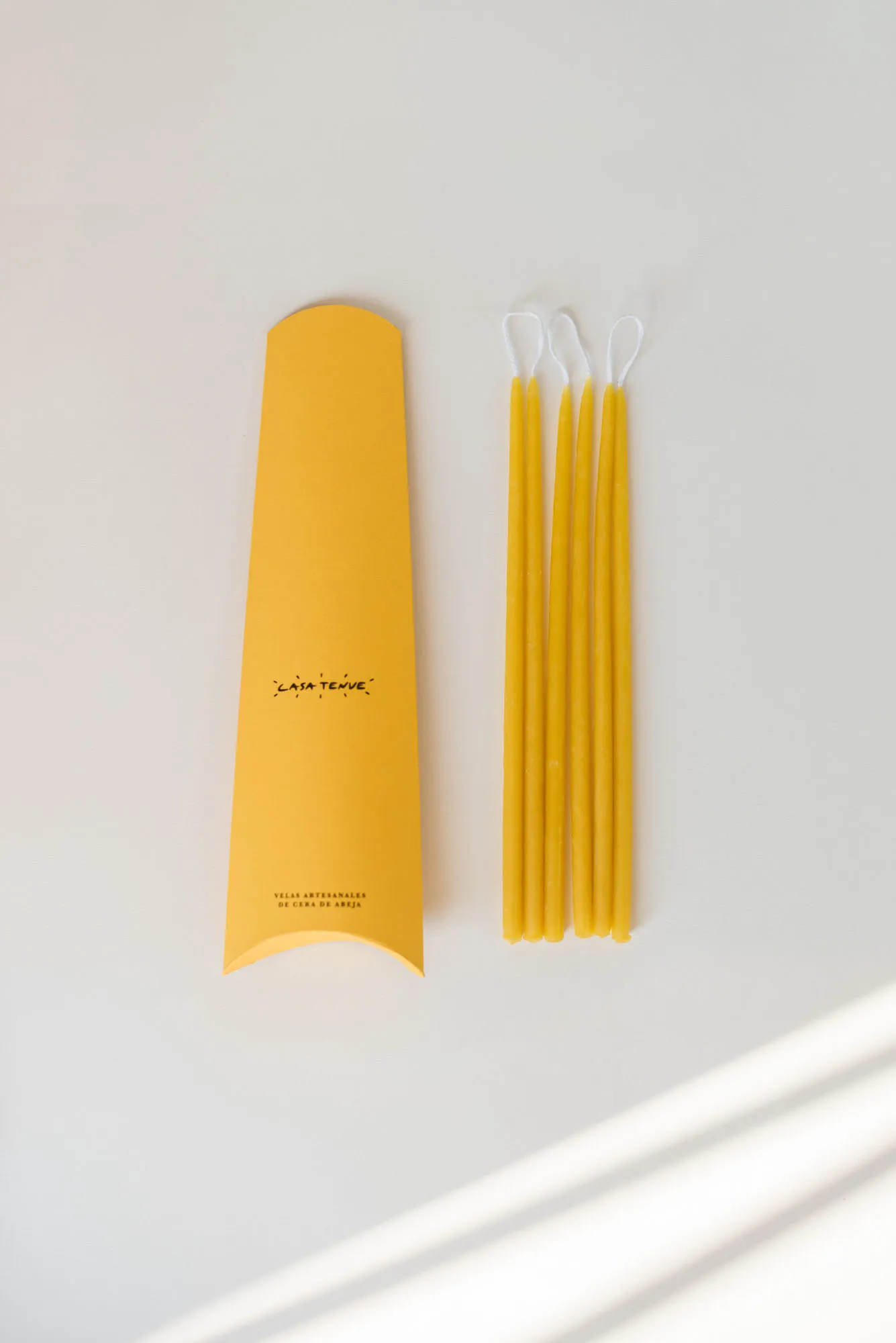 Pack de 6 velas alargadas hechas a mano con cera de abeja local y mecha de algodón. El color de las velas puede variar al tratarse de un producto natural. Su aroma es sutil al no contener perfume.
