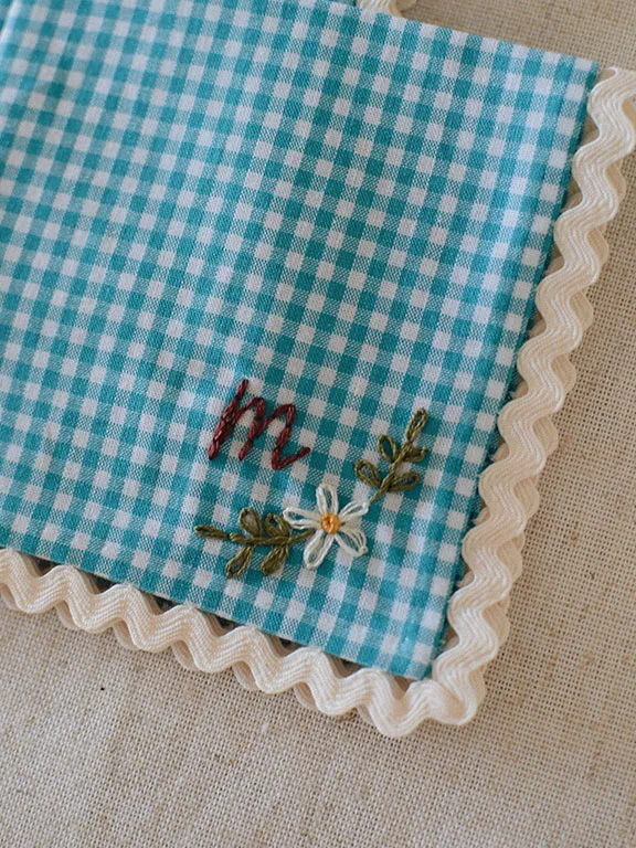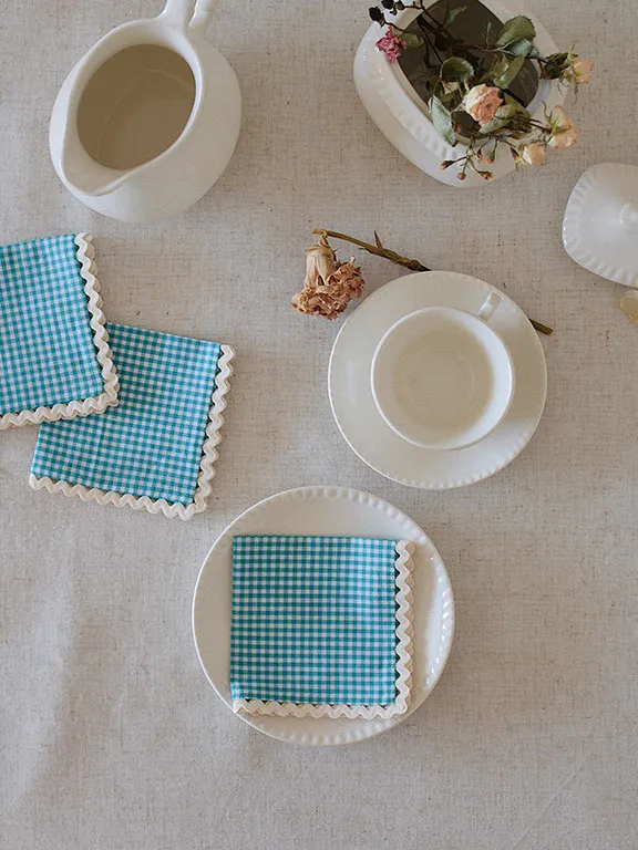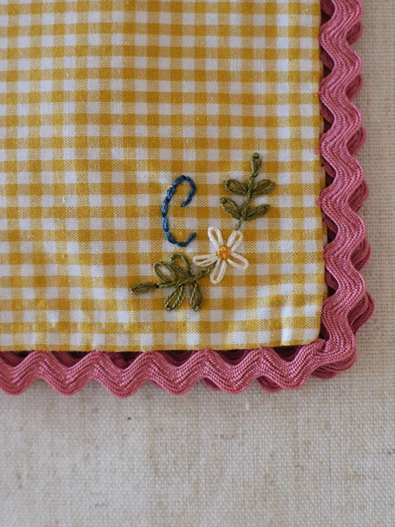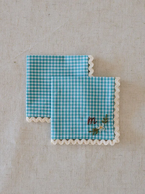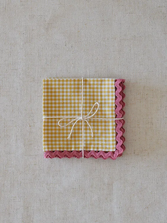 Pack de 2 servilletas de aperitivo con estampado de vichy mostaza o verde. Tenéis la opción de personalizarla con vuestra inicial.