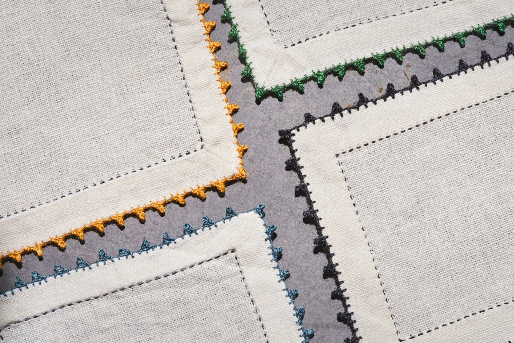 Color de Hilos: Verde oscuro – Azul cobalto – Negro – Mostaza