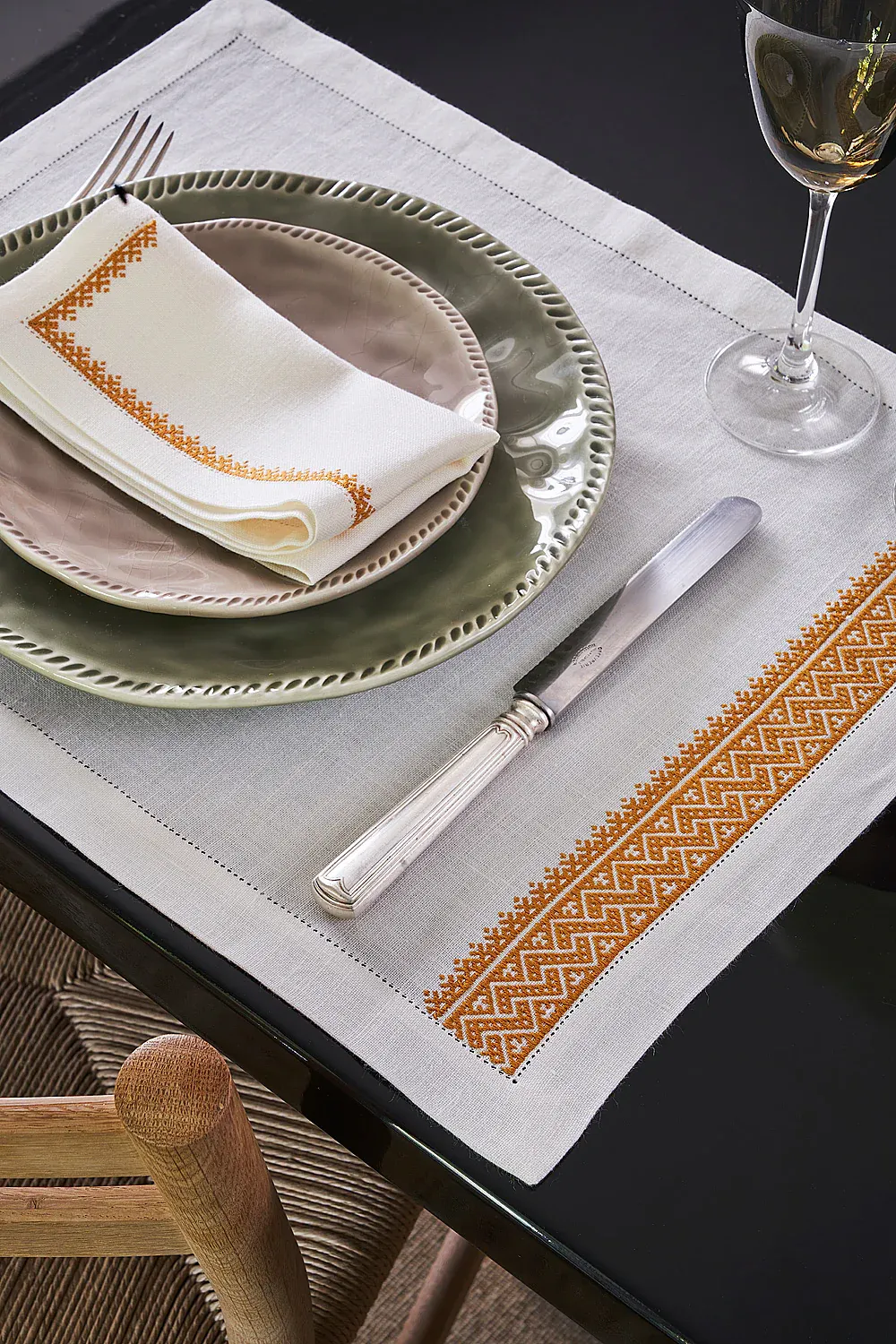 Servilleta confeccionada y bordada a mano usando la ancestral técnica de tejidillo. Realizadas por bordadoras de la provincia de Toledo (España)