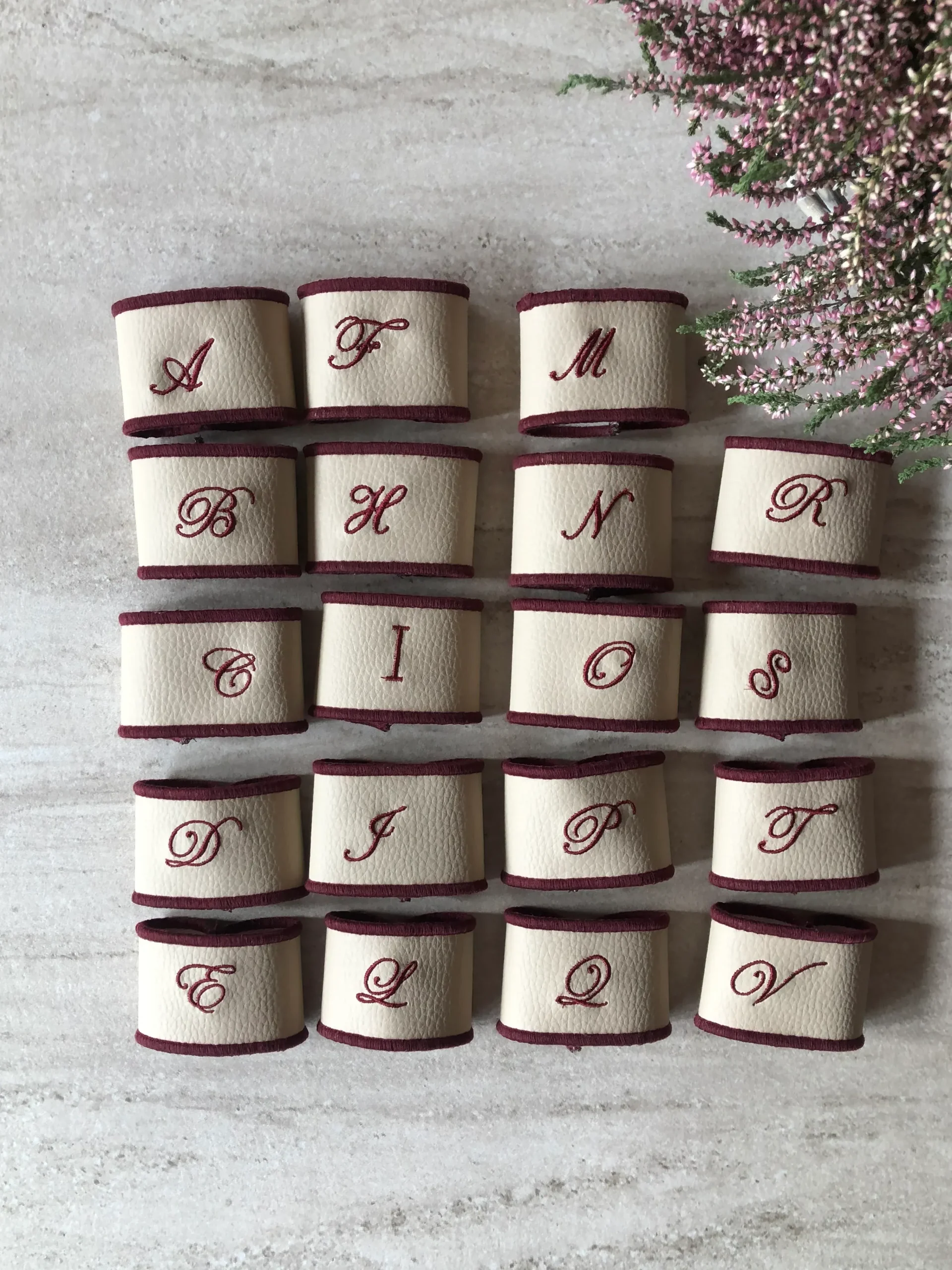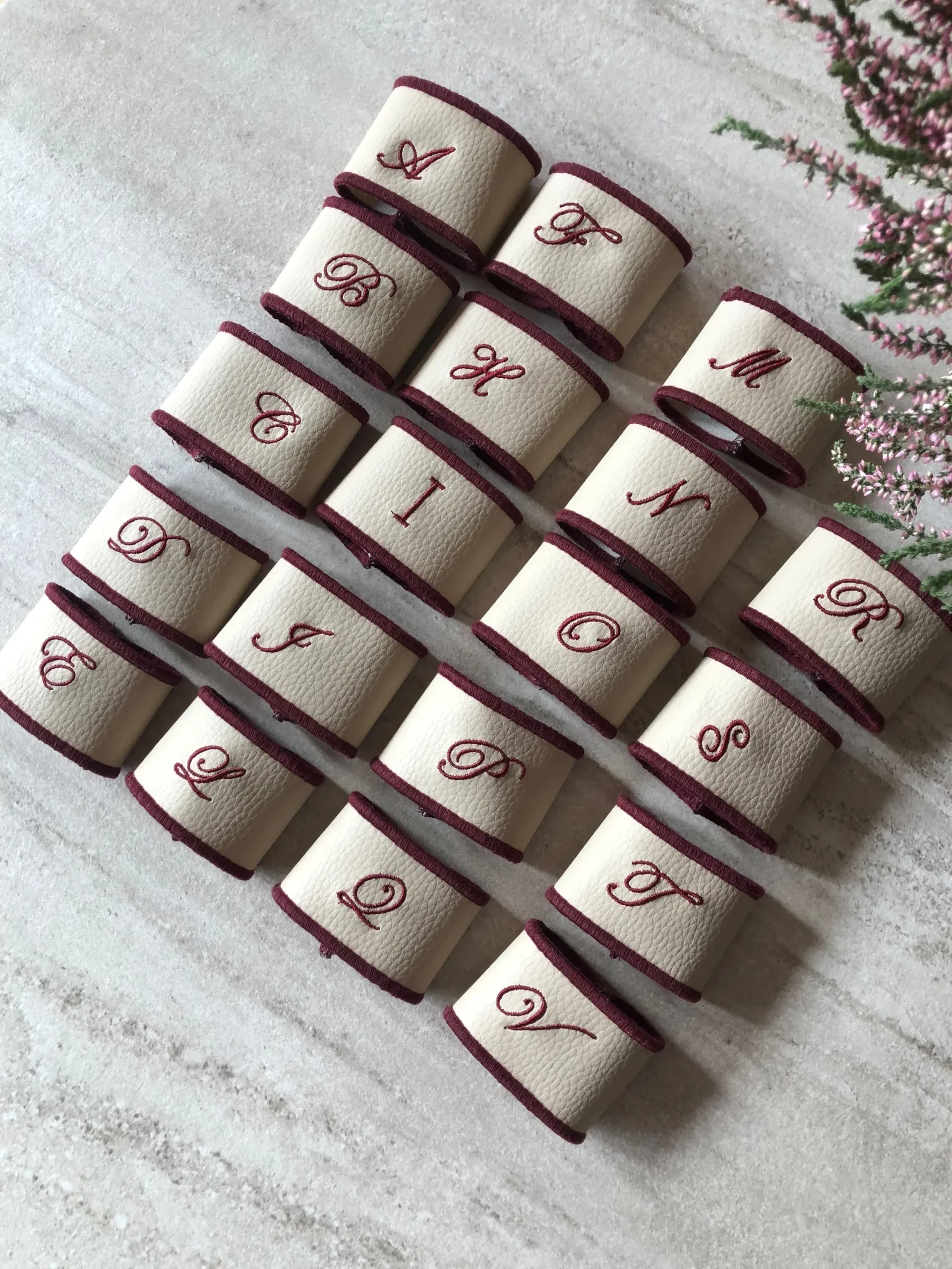 Servilletero en polipiel piedra bordado