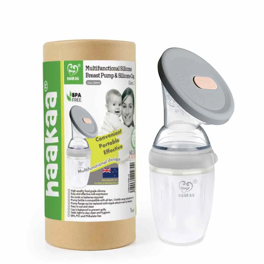 El extractor de leche de silicona Haakaa Gen.3 mantiene el diseño simple y eficaz de los demás Recolectores de Haakaa, recoge la leche por succión natural.