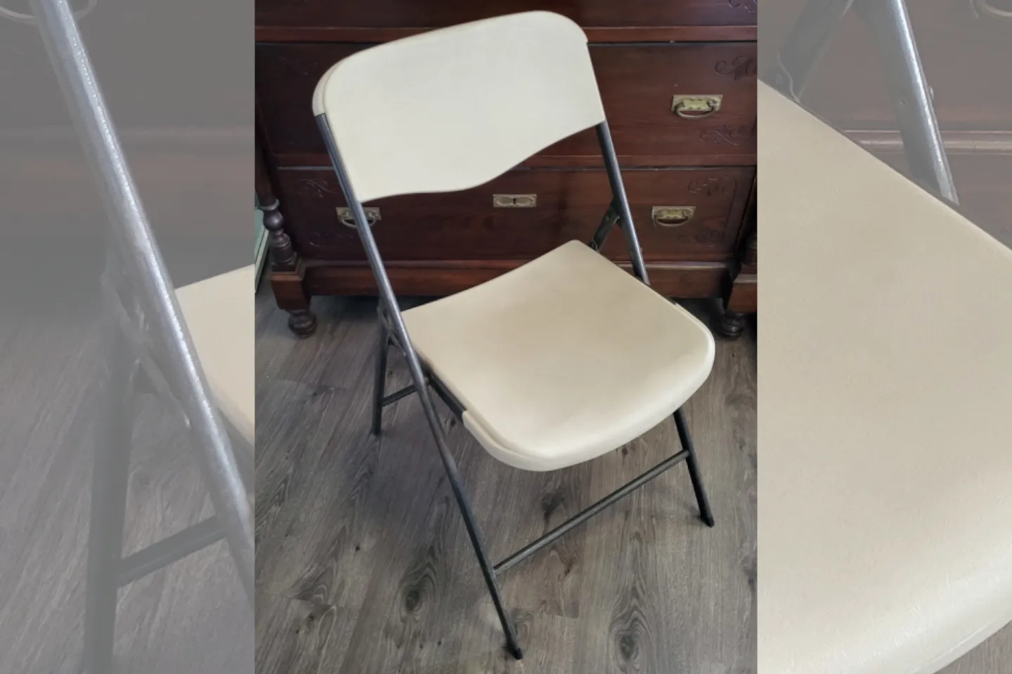 La clásica y universal silla pleglable americana de la casa Lifetime., modelo ergo en blanco roto., polietileno y metal ., cómoda y versátil. medidas abierta: 47x48x84,5 cm, plegada: 47×103,5 cm