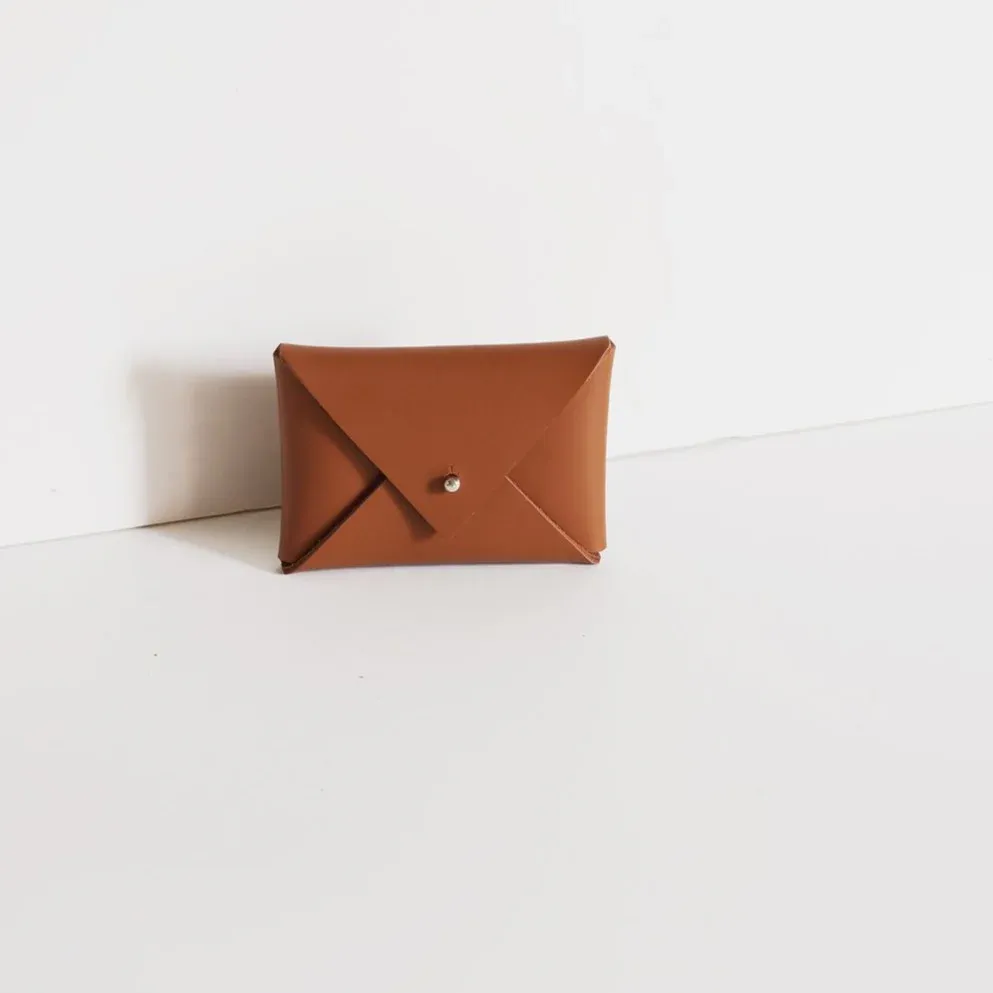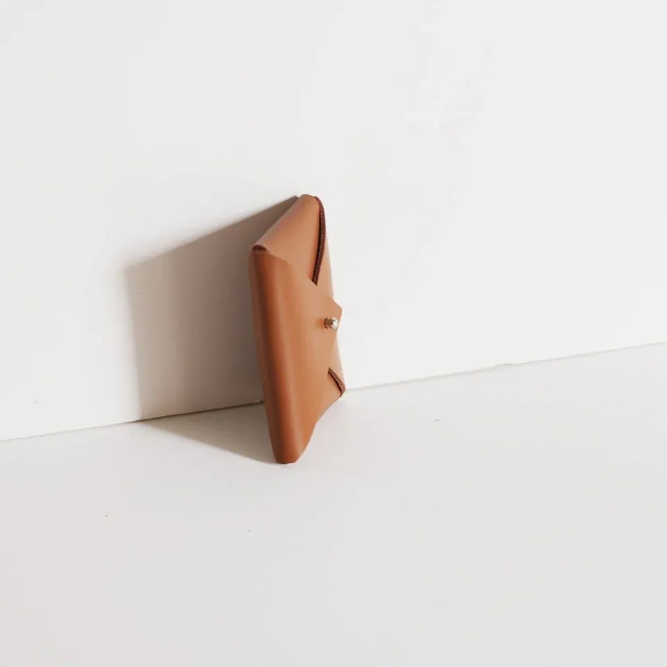 Cartera de cuero en forma de sobre de cuero. Sencilla forma de llevar todas tus tarjetas de banco y de visita. También puedes llevar algún billete de los que ahora llevamos encima con algo de suerte. Te da el toque que estabas buscando para llevar en el bolso o en la mano.