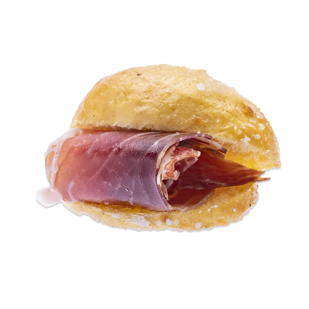 Clásico bollo hojaldrado recién horneado esta vez relleno de paleta ibérica.