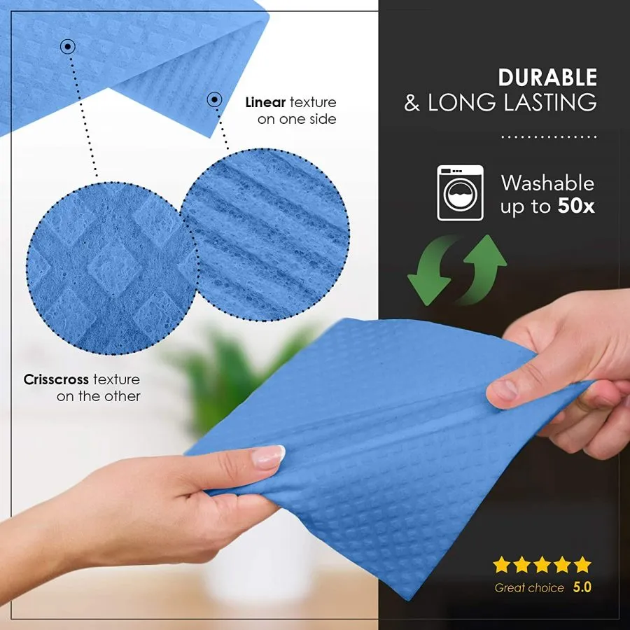 • Limpieza fácil y eficiente: paquete de 10 paños grises (8 x 7 pulgadas). Nuestros paños para lavavajillas tienen la funcionalidad de una esponja de celulosa con la durabilidad de hasta 15 rollos de toallas de papel. Más versátiles que un paño de limpieza de microfibra, son perfectos para limpiar superficies, lavar platos y limpiar derrames, así como para usar en el baño, mascotas, coche, jardín y oficina. Súper absorbente, absorbe 20 veces más líquido que su peso. Secado rápido, no más olores.