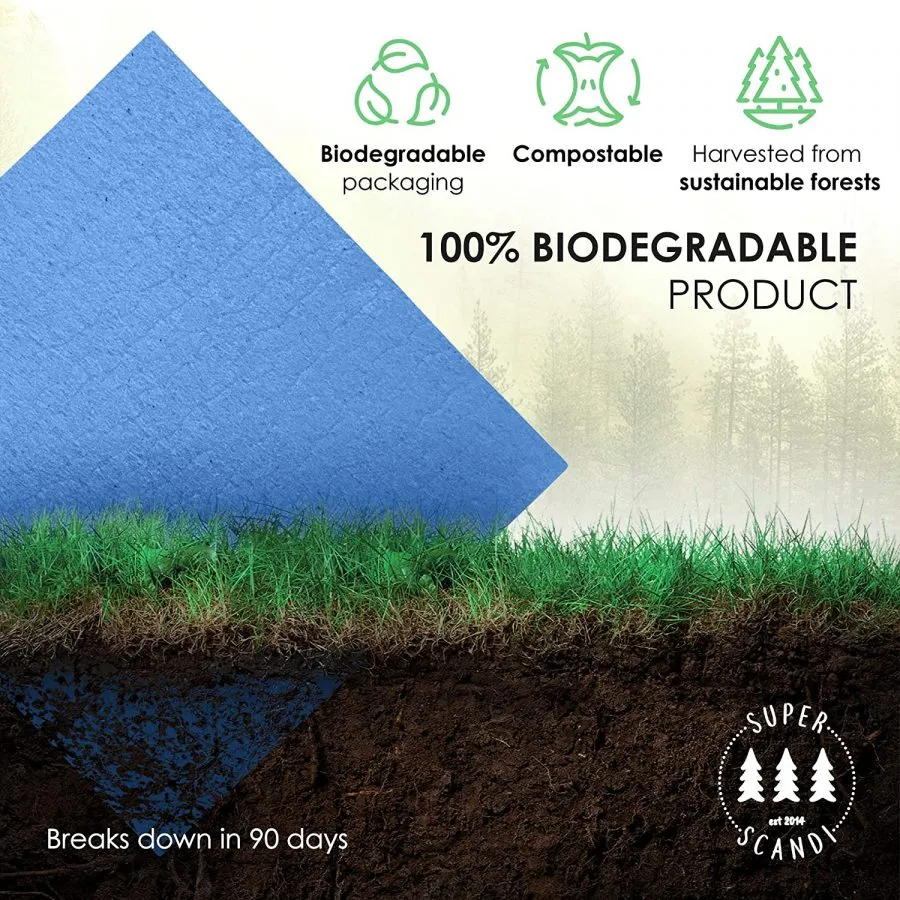 • 100% biodegradable y respetuoso con el medio ambiente. Sin productos químicos, sin vertederos. Hecho de materiales naturales y sostenibles, 30% algodón, 70% pulpa de madera de celulosa y compostables, nuestros paños de cocina son perfectos tanto para tu hogar como para el planeta.