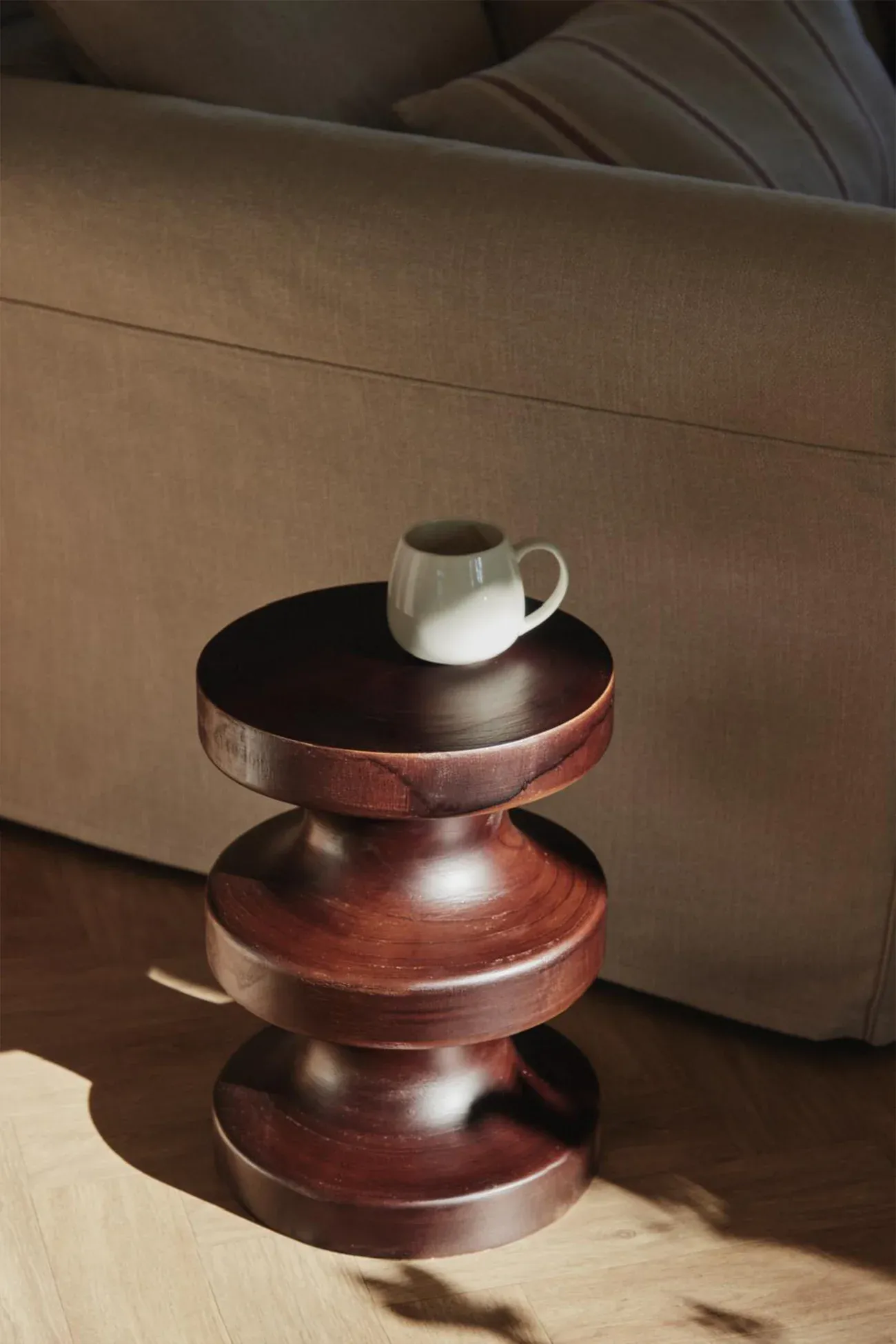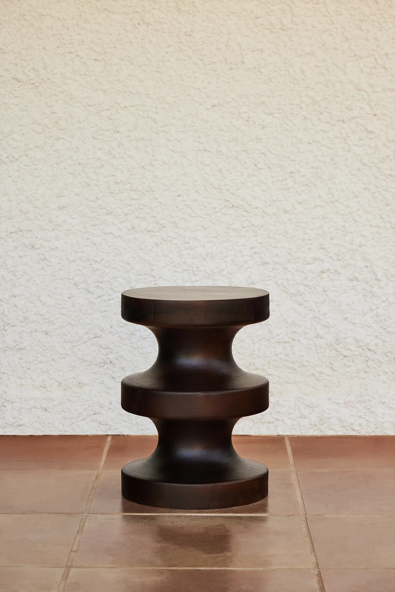 Las formas redondeadas se dan la mano en este taburete de estilo elegante y diseño espectacular. El tono oscuro de la madera con la que está elaborado lo hace versátil en cualquier estilo decorativo y confiere personalidad y estilo en cualquier hogar. Puede ser usado como taburete, como elemento decorativo e incluso como mesita auxiliar.