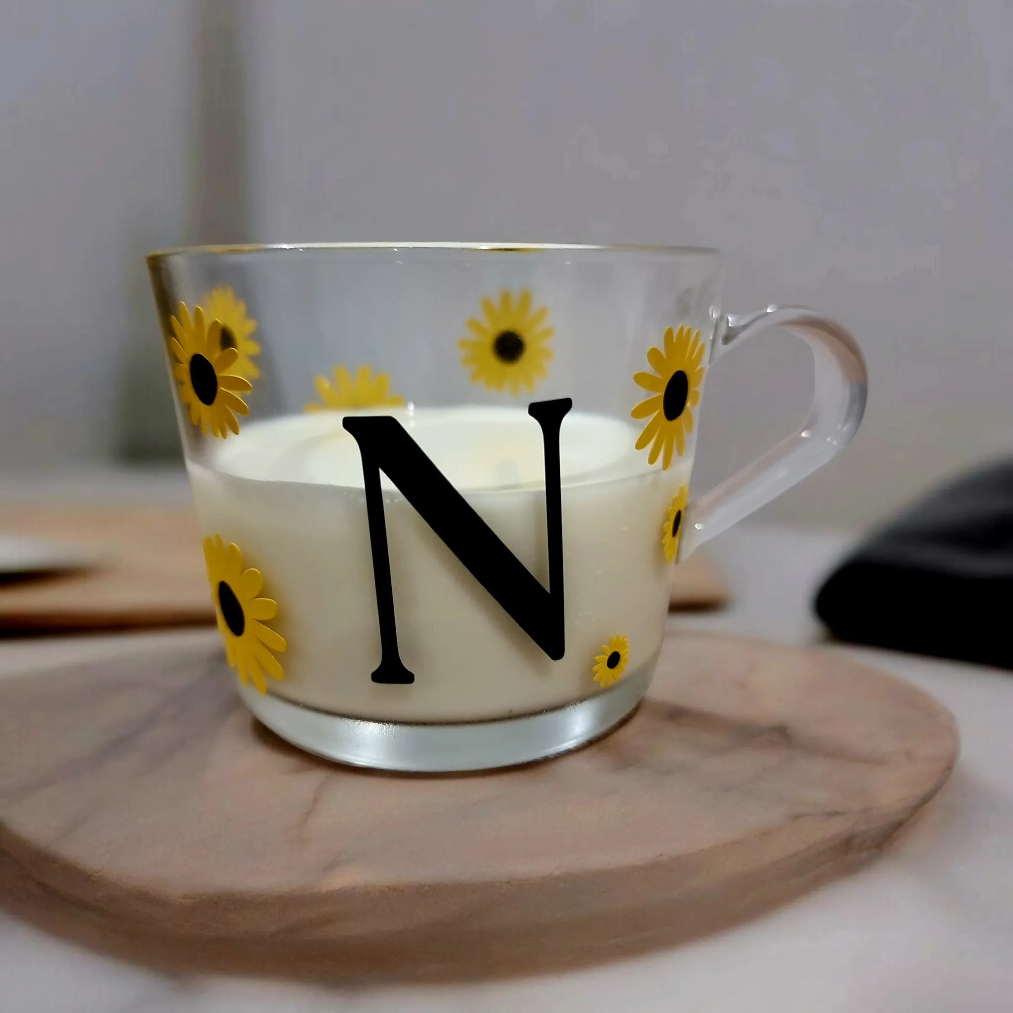 Taza personalizada con inicial y girasoles